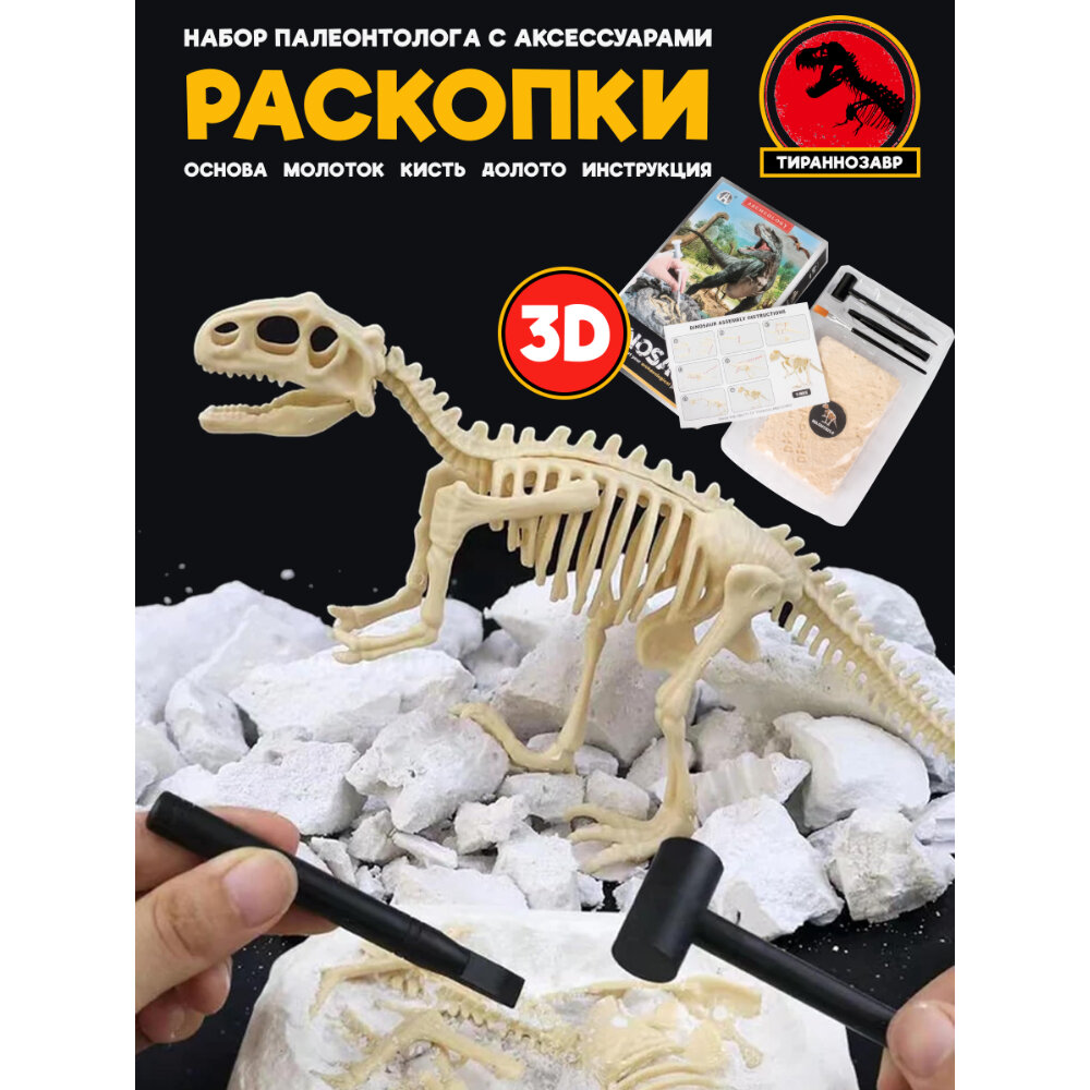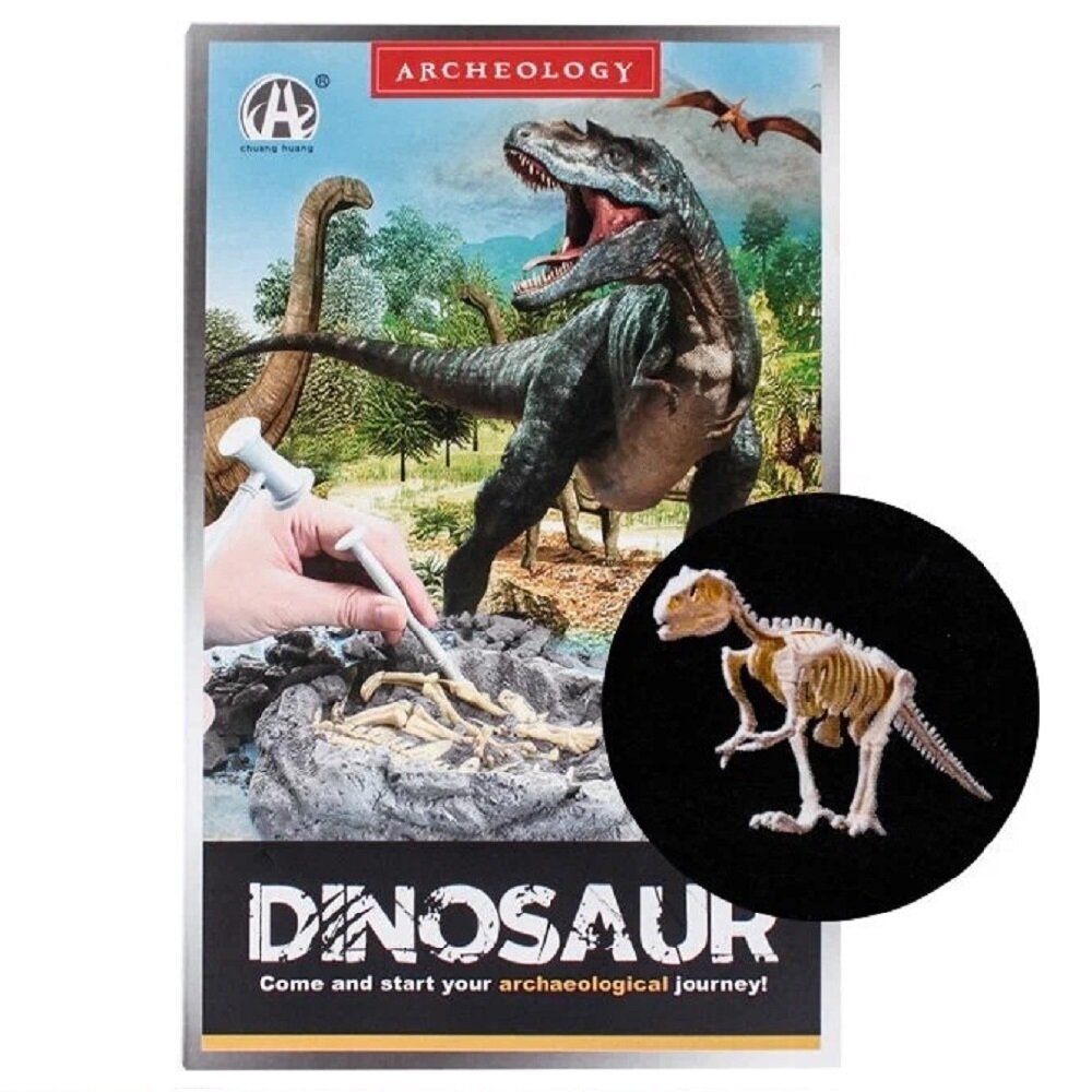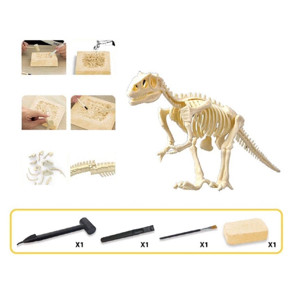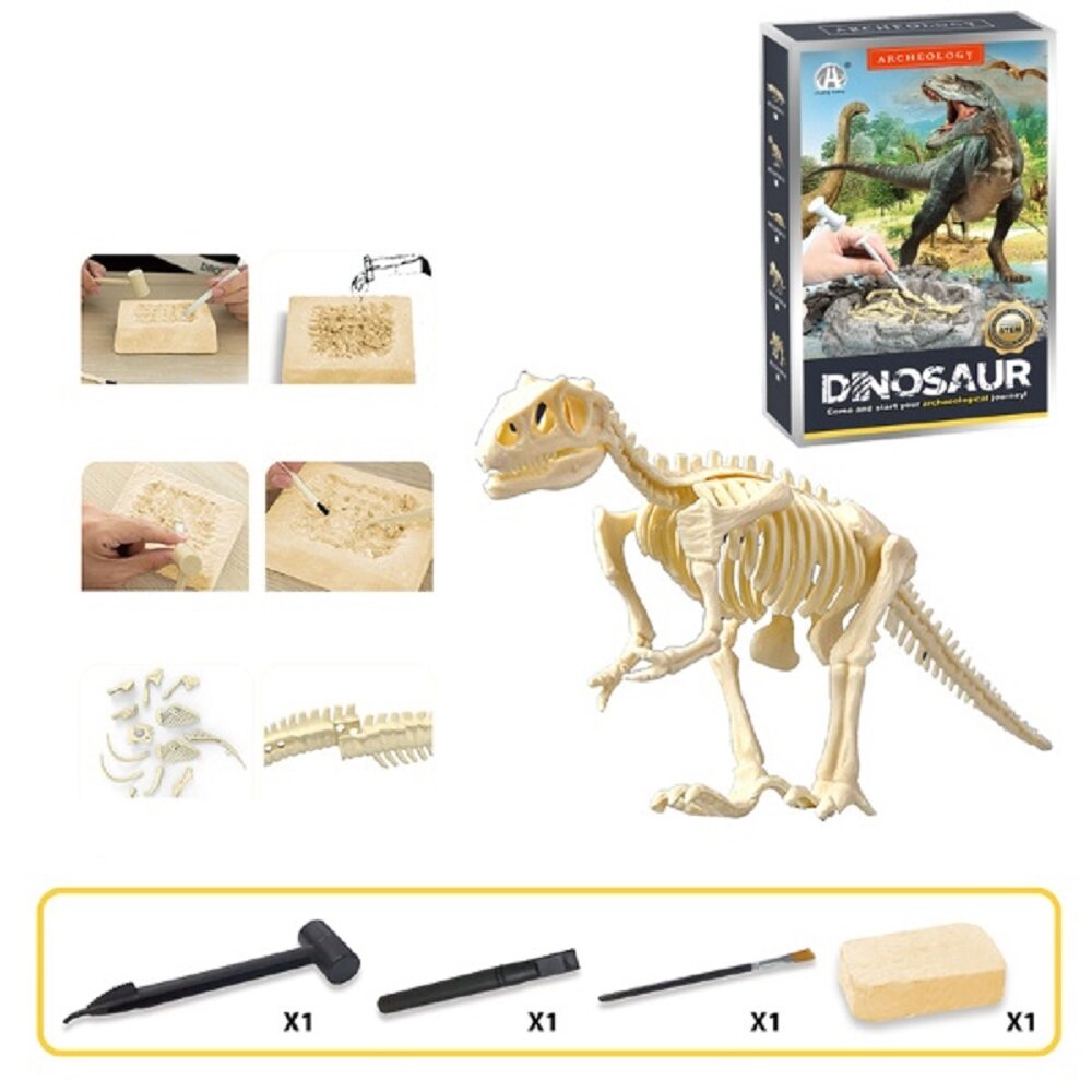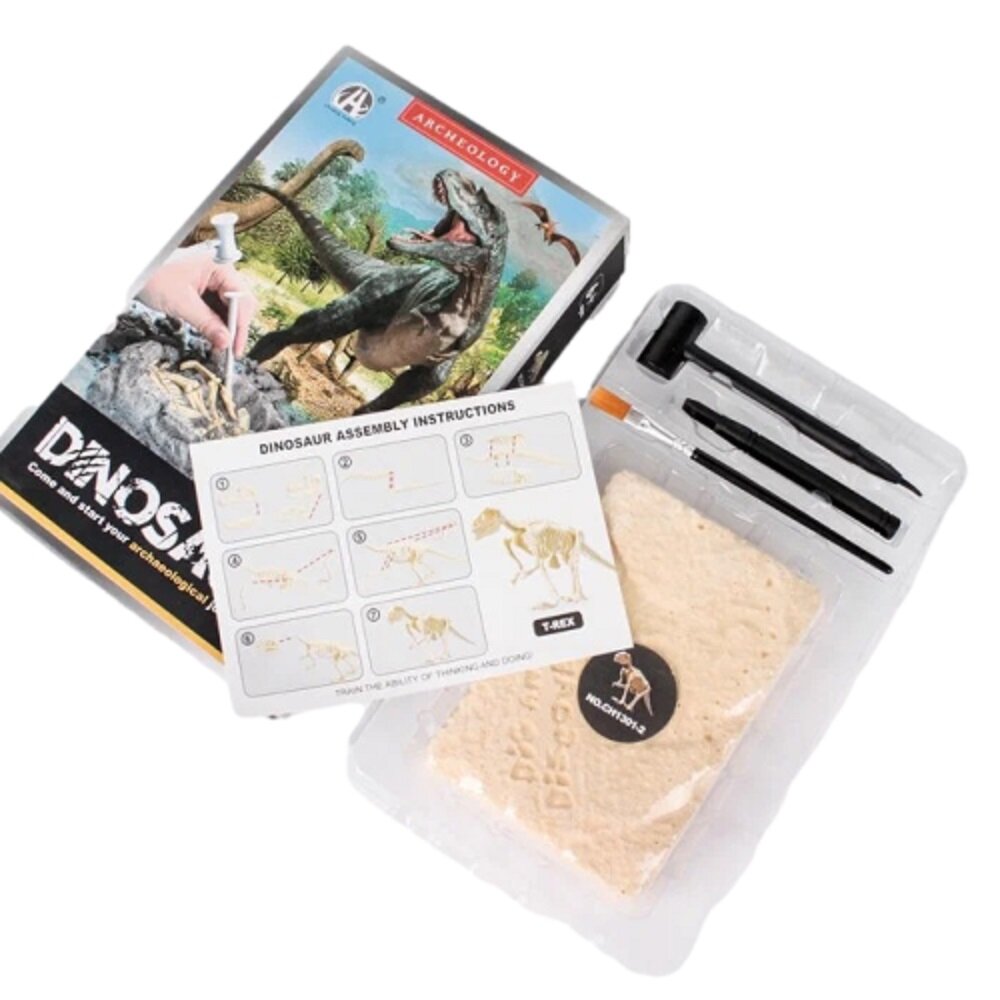 Купить Набор для раскопок скелет динозавра, основа из гипса 14 х 9.5 х 3 см, молоток, долото и кисть