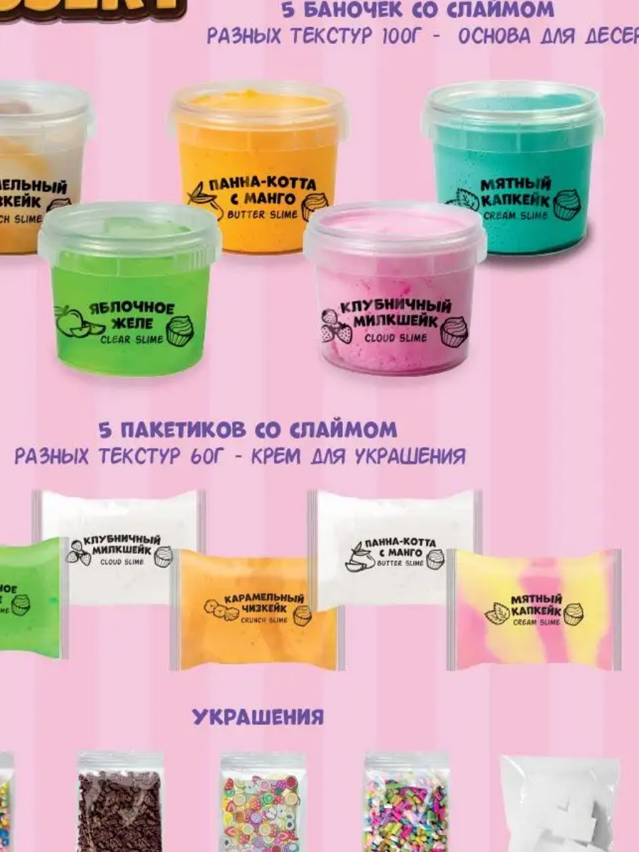 Набор для детского творчества "Slime Desserts", для девочек, кулинарные эксперименты, 5 слаймов интересное: