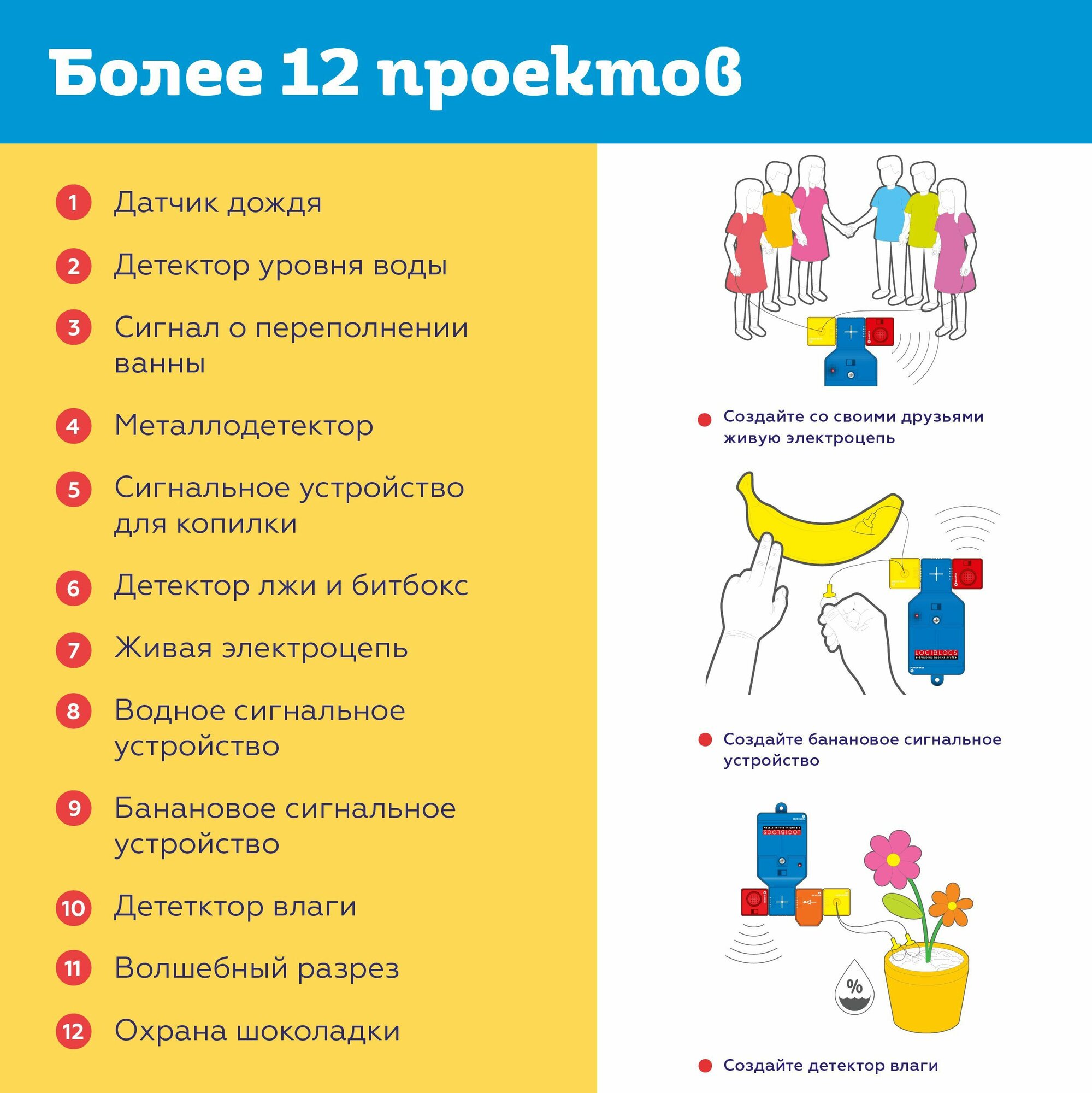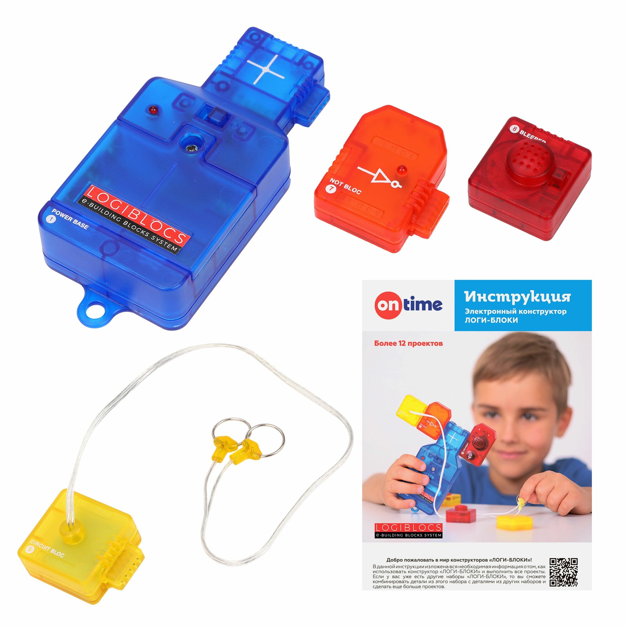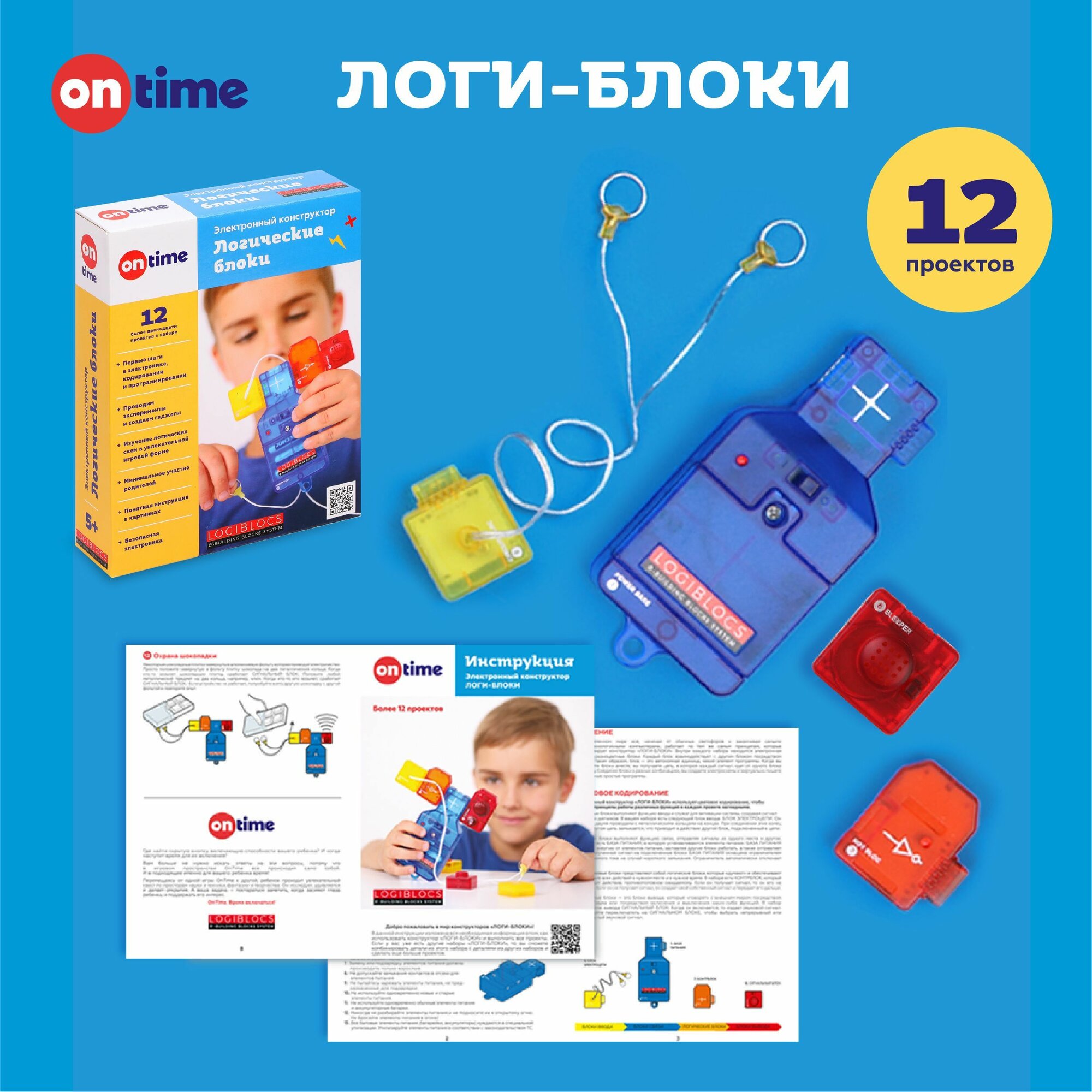 Опыты и эксперименты ON TIME "логи-блоки" физика, для детей, 12 проектов, электроника, кодирование и программирование интересное: