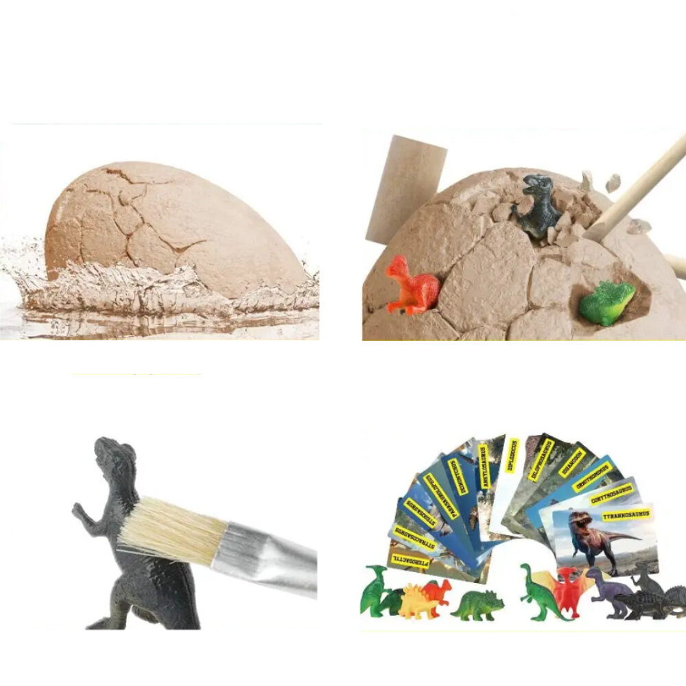 Набор археологические раскопки динозавров для детей, основа из гипса яйцо 13 х 13 х 20 см, молоток, долото и кисть, 2100-С интересное: