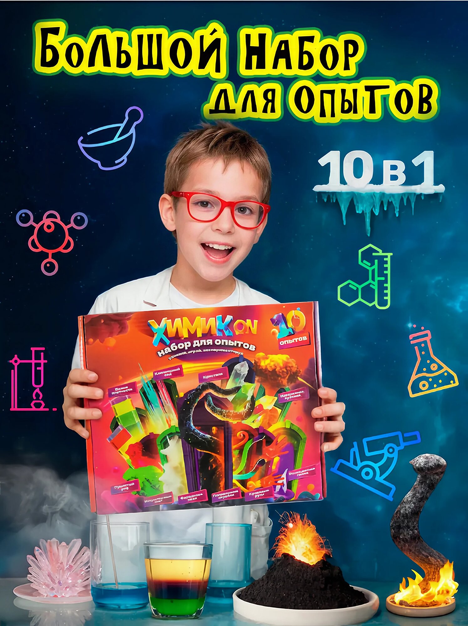 Детский набор для опытов "10 экспериментов в 1 коробке"/ Развивающие игрушки для детей интересное:
