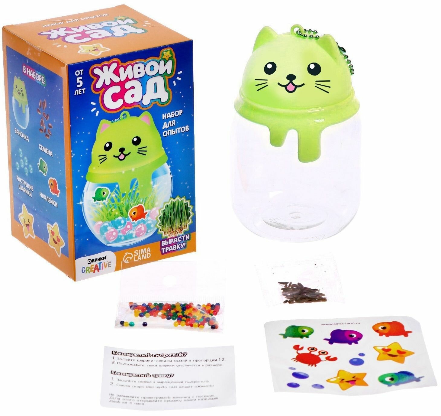 Купить Набор для опытов Живой сад "Кошечка", выращивание растений в домашних условиях, в комплекте: баночка, семена, растущие шарики