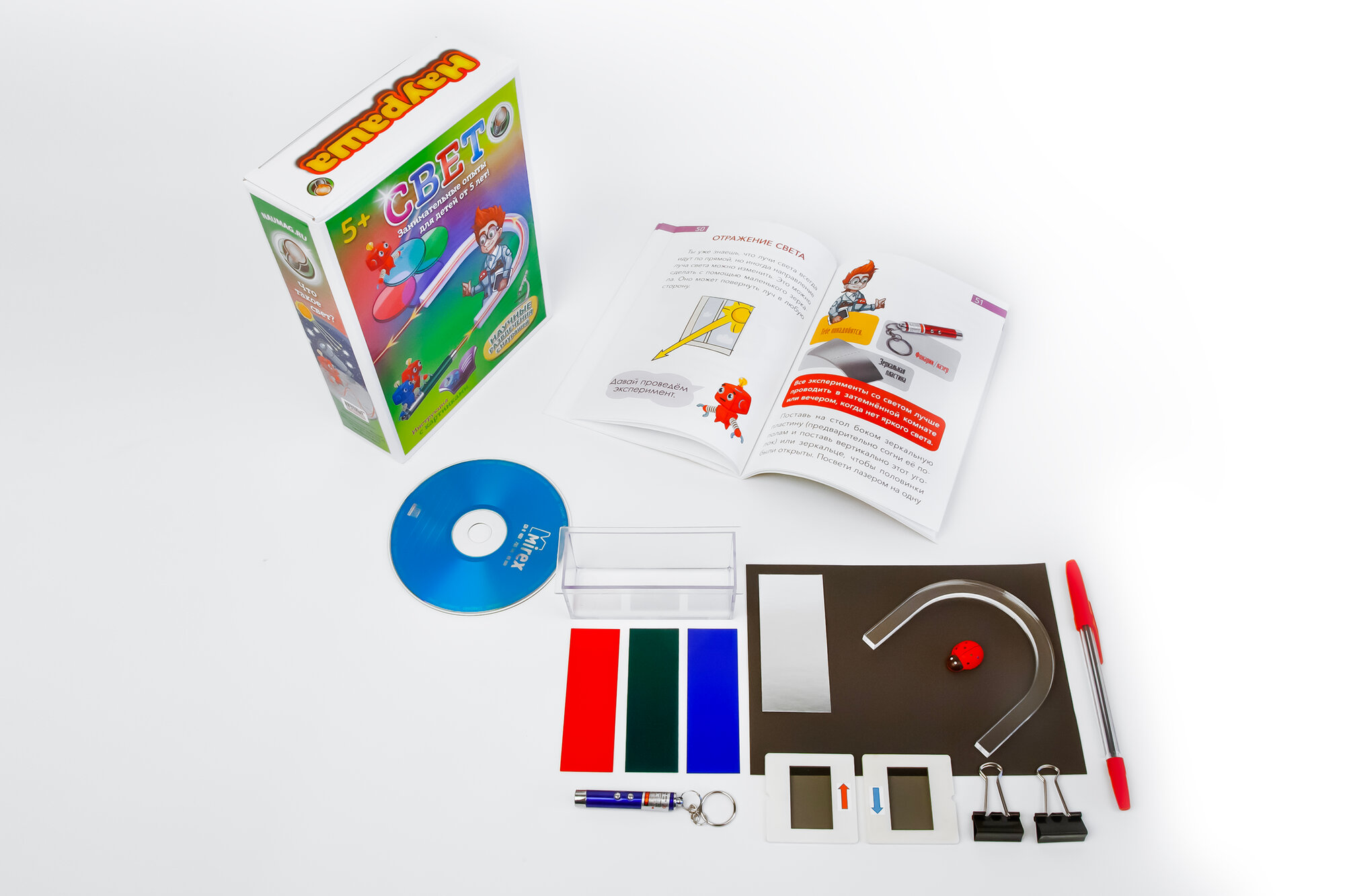 Развивающий набор для опытов и экспериментов "Свет" с Наурашей! интересное: