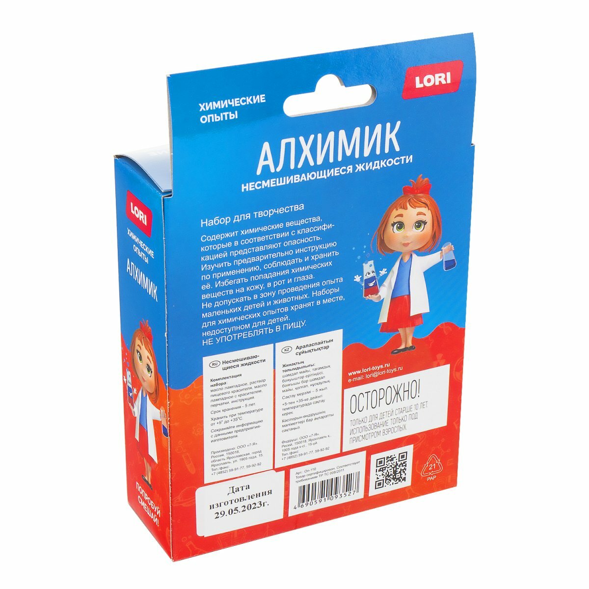Купить Научный набор LORI Химические опыты Несмешивающиеся жидкости красно синяя Оп-110