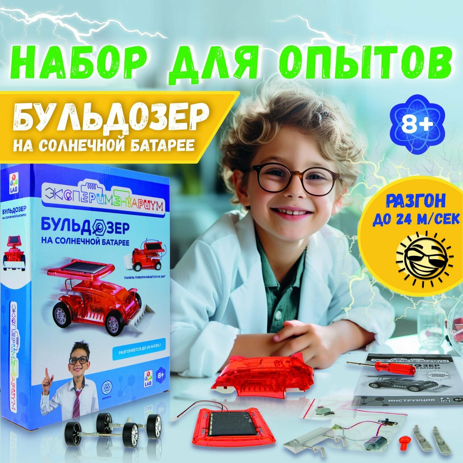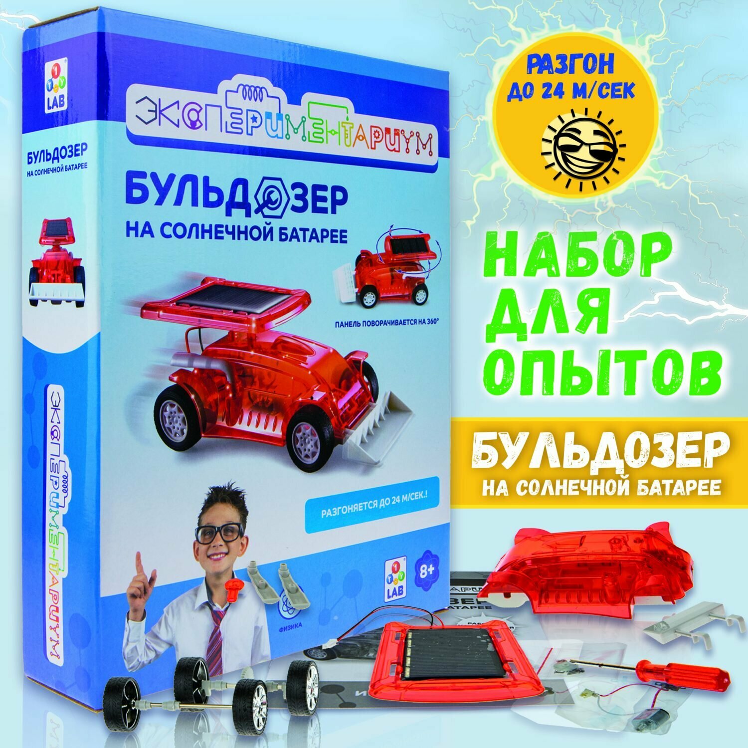 Научный набор физика для опытов 1TOY экспериментариум Бульдозер на солнечной батарее интересное: