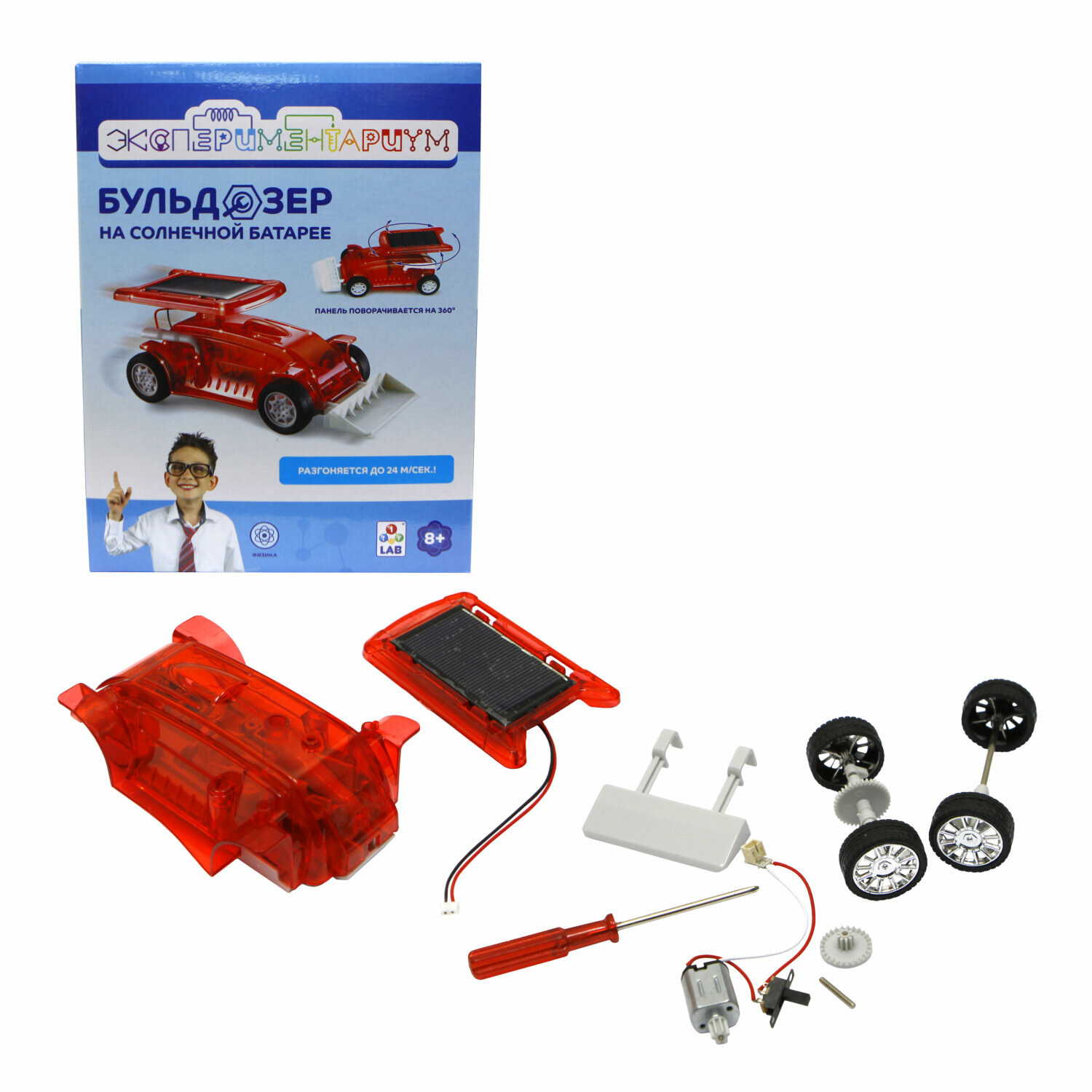 Купить Научный набор физика для опытов 1TOY экспериментариум Бульдозер на солнечной батарее