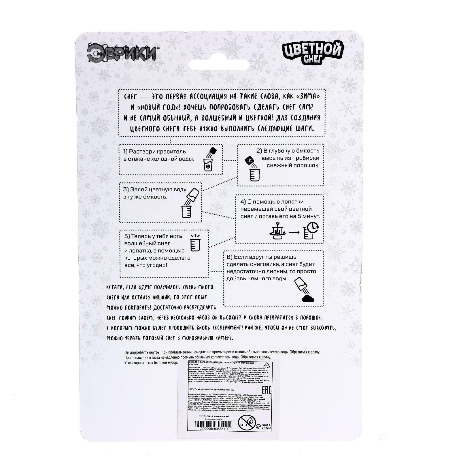 Набор для опытов «Цветной снег», цвет синий, 6495351 интересное: