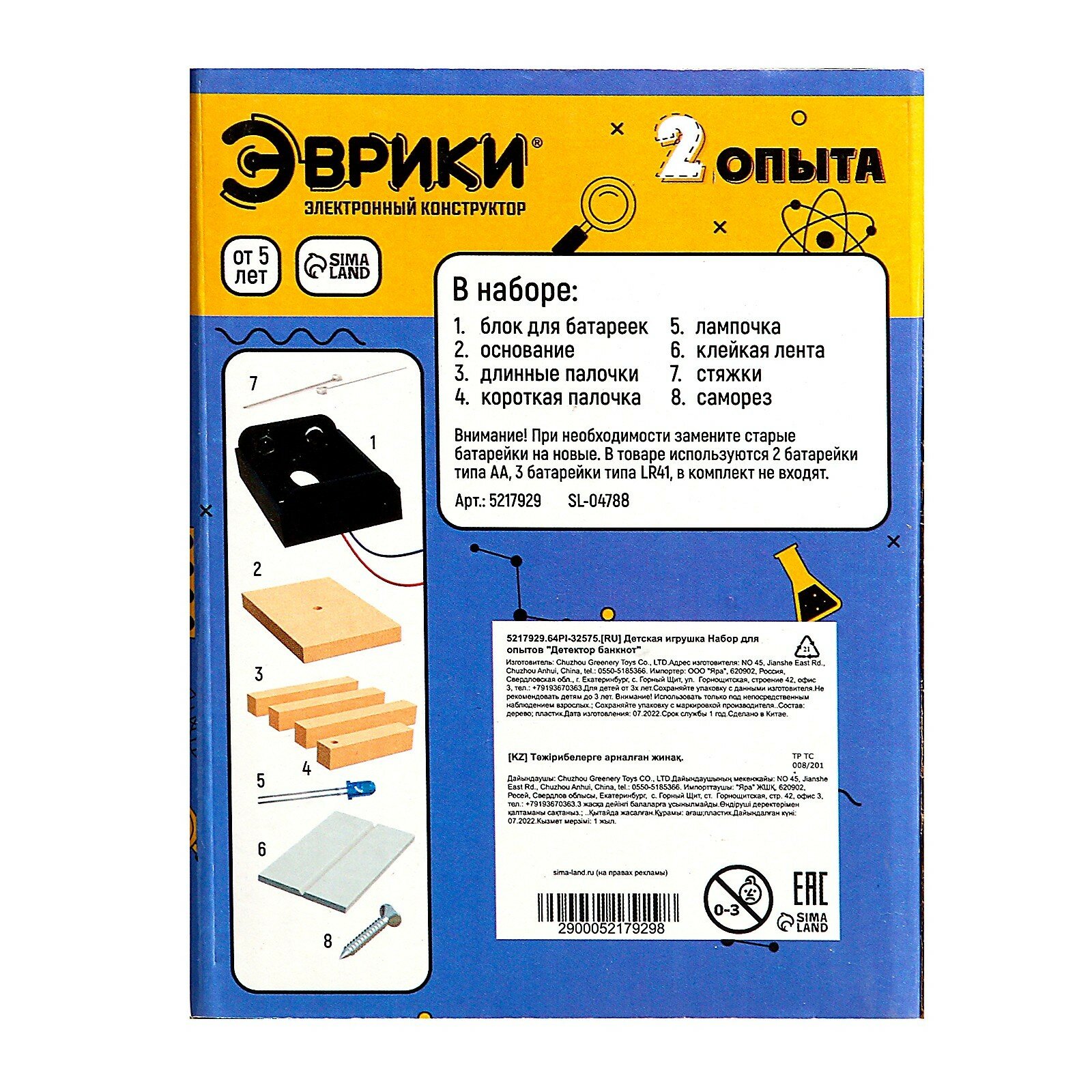 Купить Набор для опытов "Детектор банкнот" из дерева, 2 опыта, электронный, Эврики