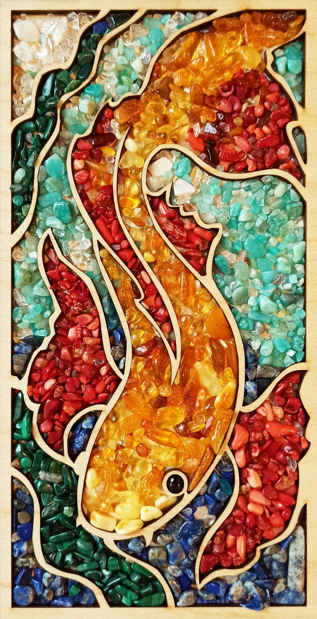 Набор для творчества, Мозаика, "Золотой Карп" 20х10 см. янтарь, коралл, амазонит, лазурит, горный хрусталь, перламутр интересное: