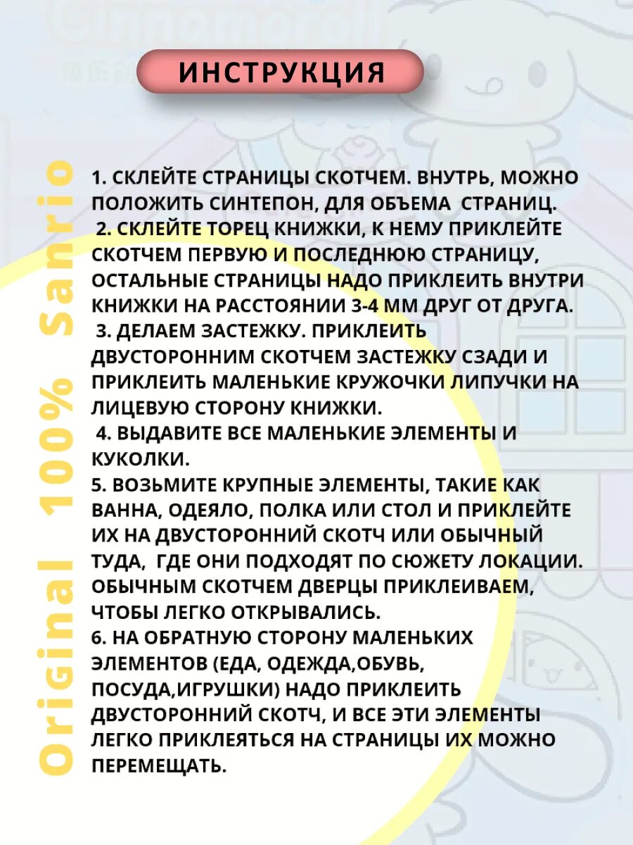 Книга бумажный домик Cinnamaroll бумажная кукла интересное: