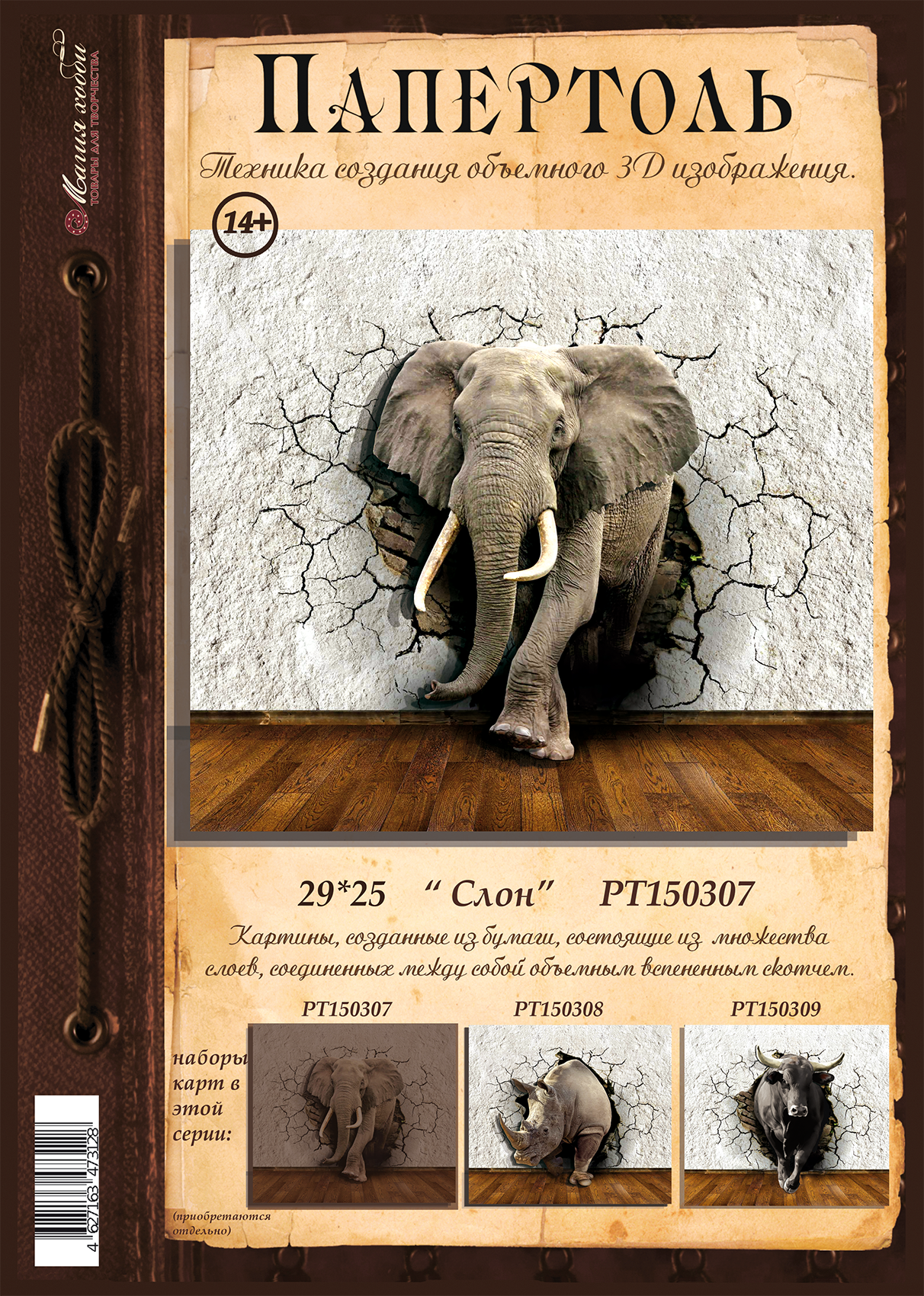 Купить Папертоль "Слон" 29*25см." - РТ150307, Магия Хобби. Карты для изготовления 3D картин, для домашнего декора