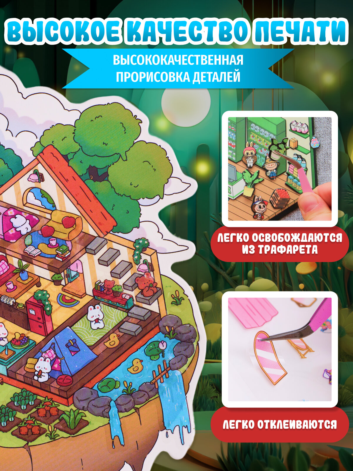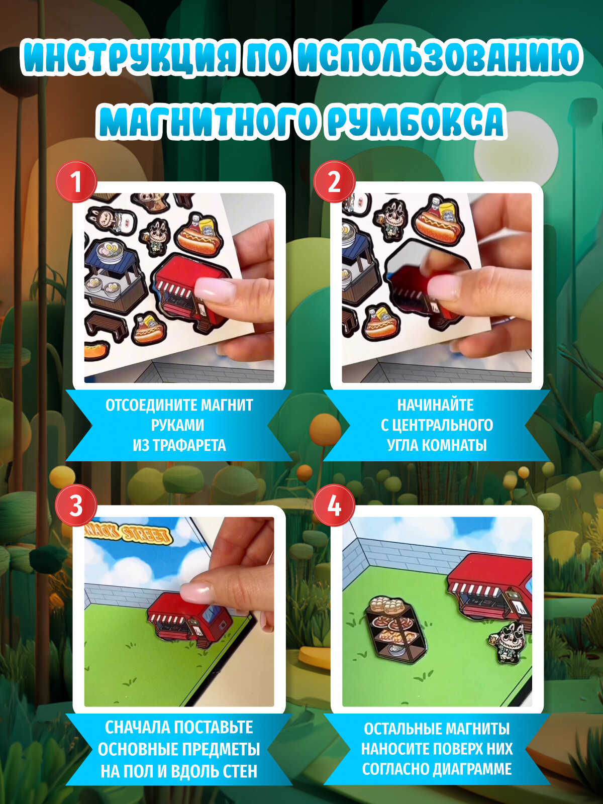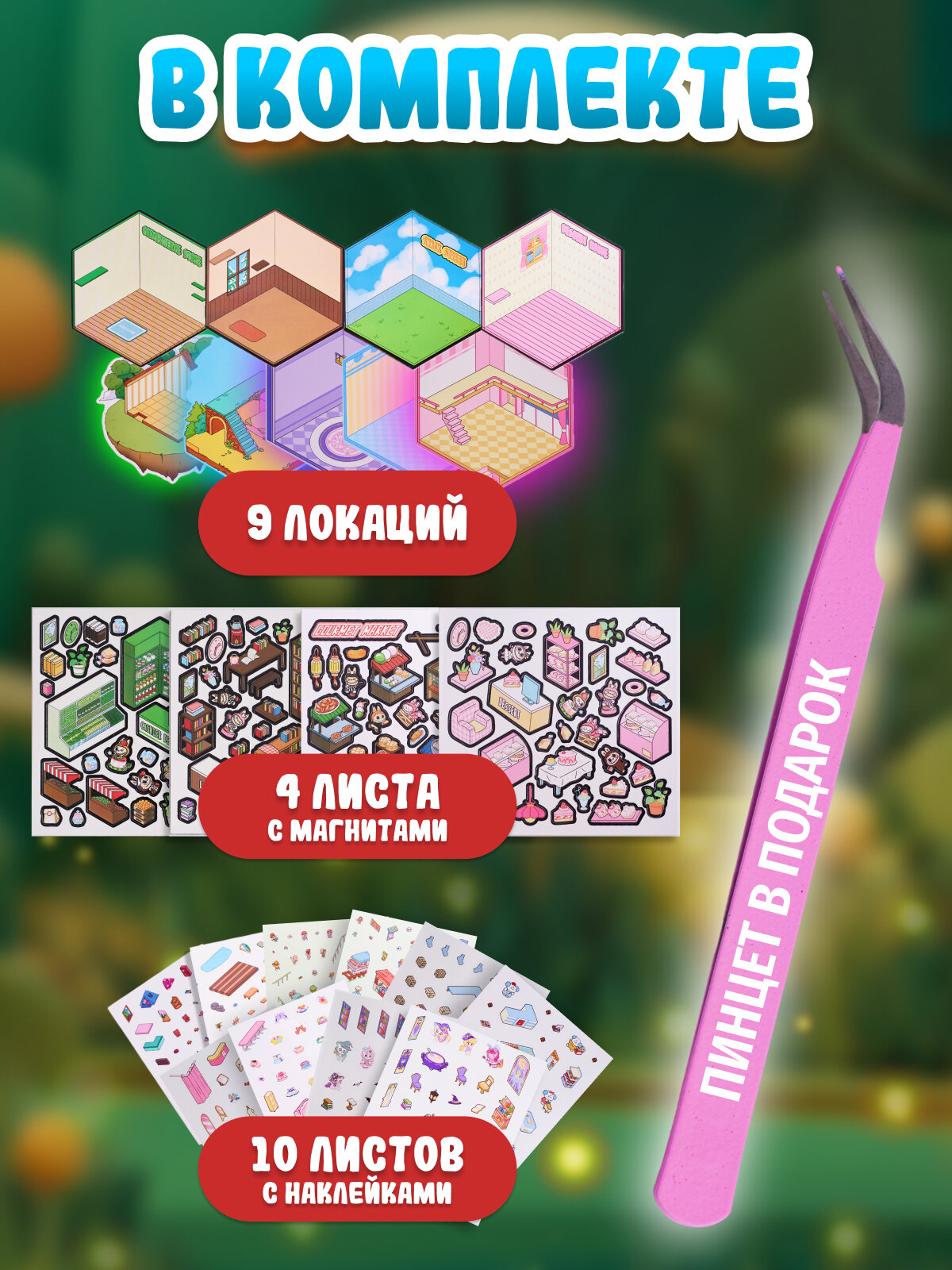 Купить Большой набор наклеек аниме румбокс 5 локаций комнат, 4 локации с магнитами 3D эффект