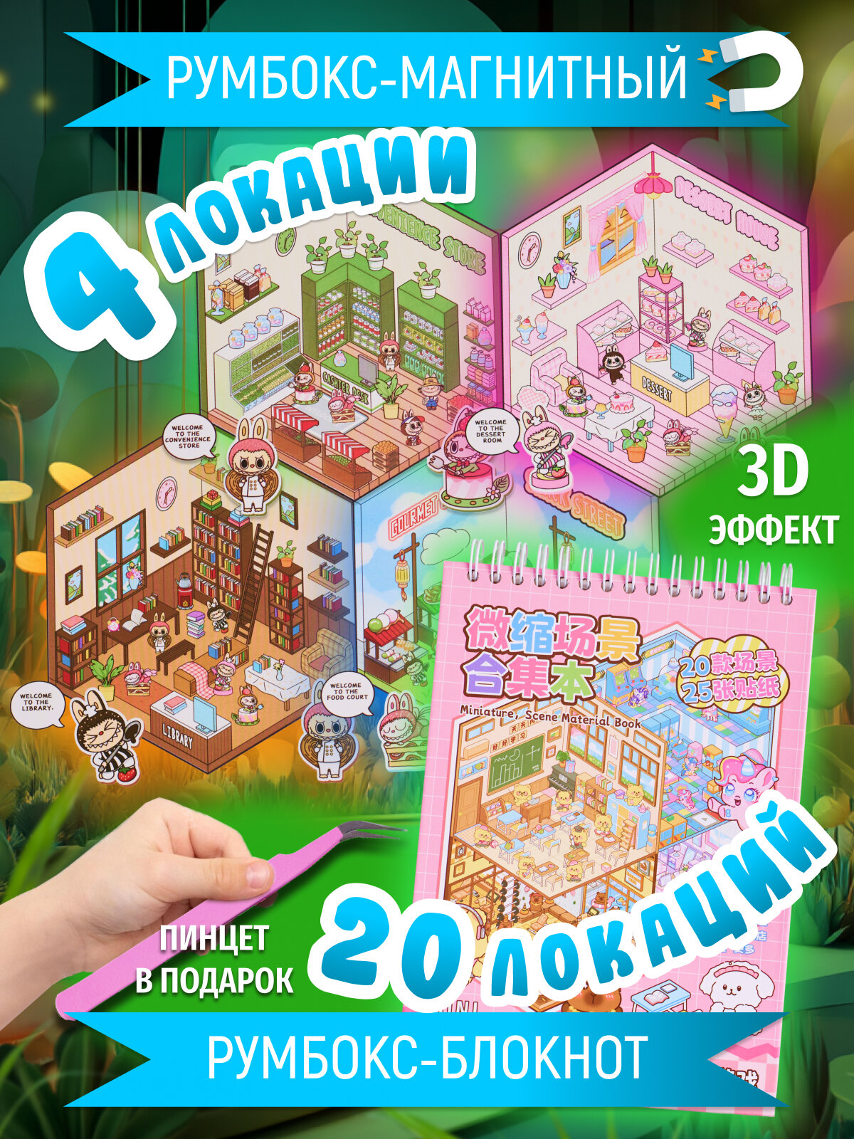 Румбокс с наклейками 20 локаций и магнитами 4 локации большой набор интересное: