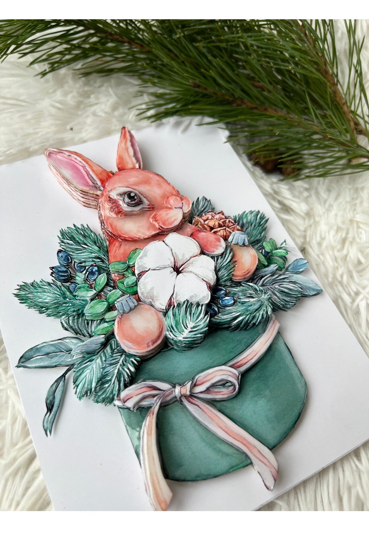 Купить Папертоль "Кролик подарок" 21х30см." - РТ150393, Магия Хобби. Карты для изготовления 3D картин, для домашнего декора
