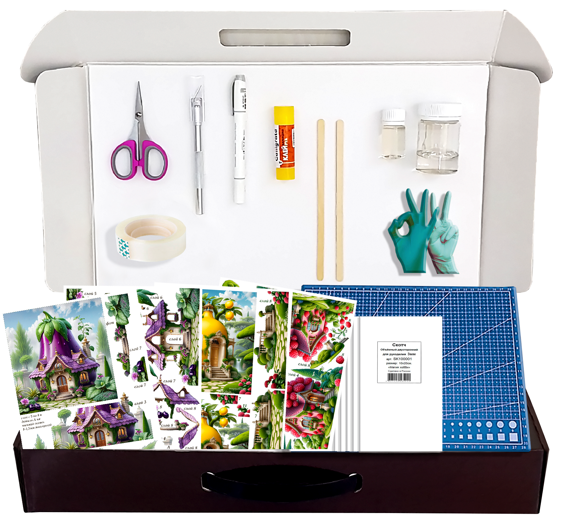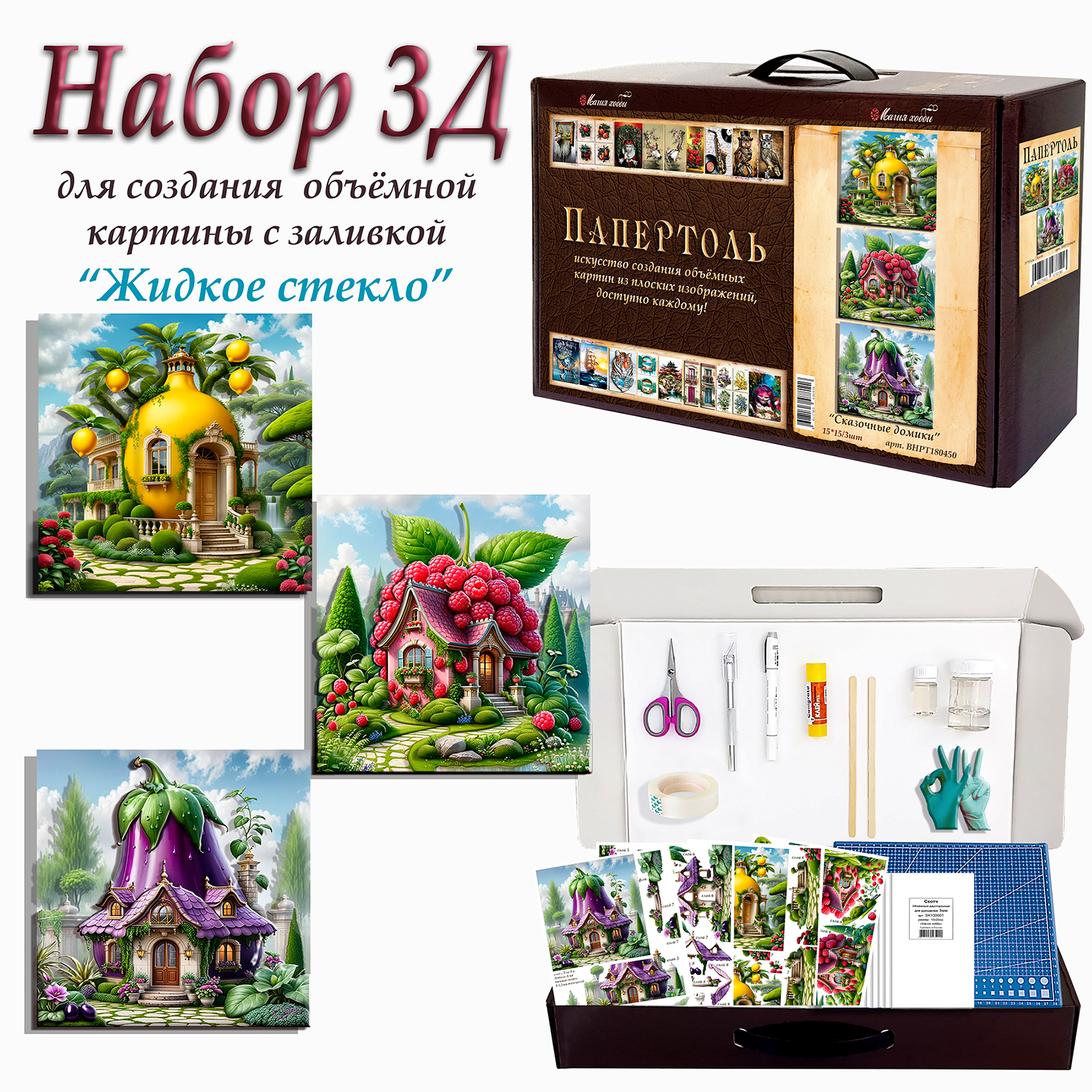 Набор папертоль "Сказочные домики" с жидким стеклом Магия Хобби, для создания объемной 3D картины интересное: