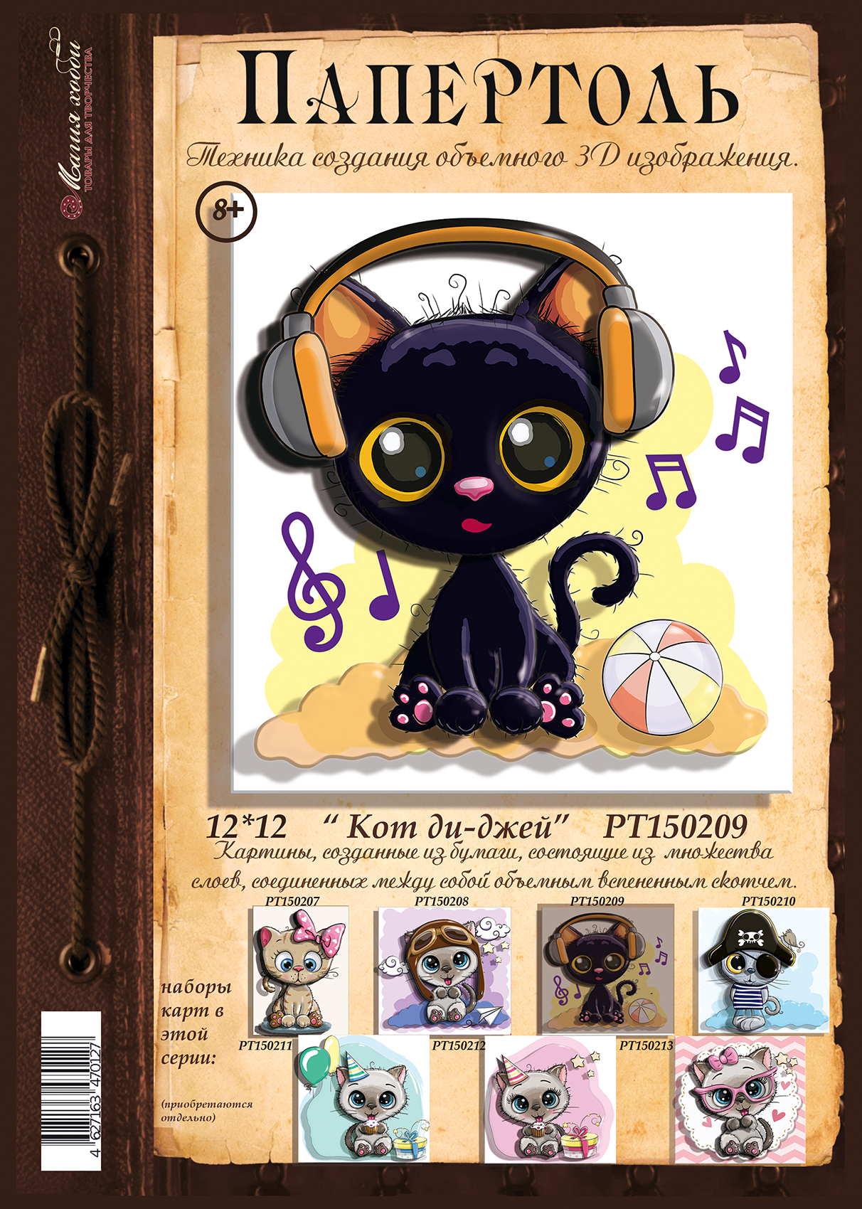 Купить Папертоль "Кот ди-джей" 12*12см." - РТ150209, Магия Хобби. Карты для изготовления 3D картин, для домашнего декора