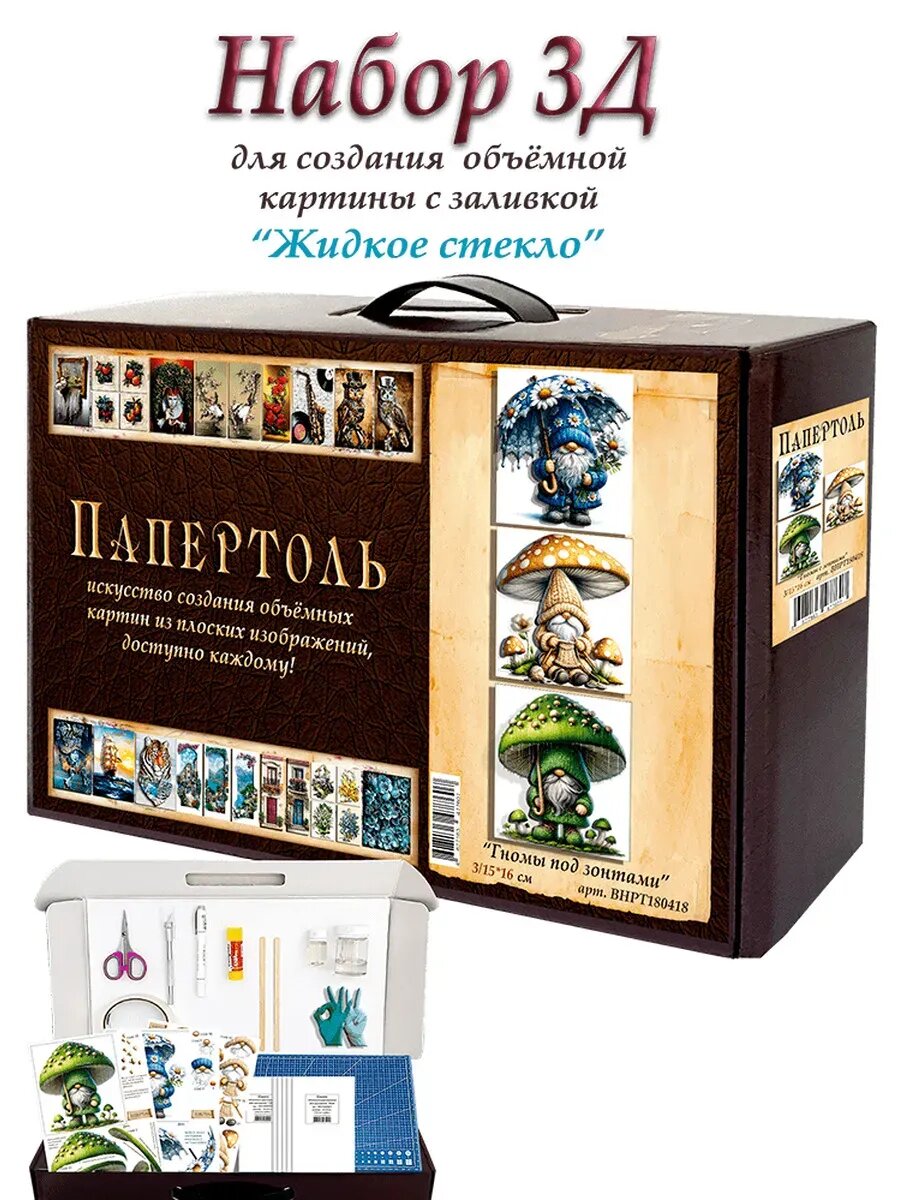 Набор для создания 3D картин Магия хобби "Гномы под зонтиками", папертоль, 8+, Россия интересное:
