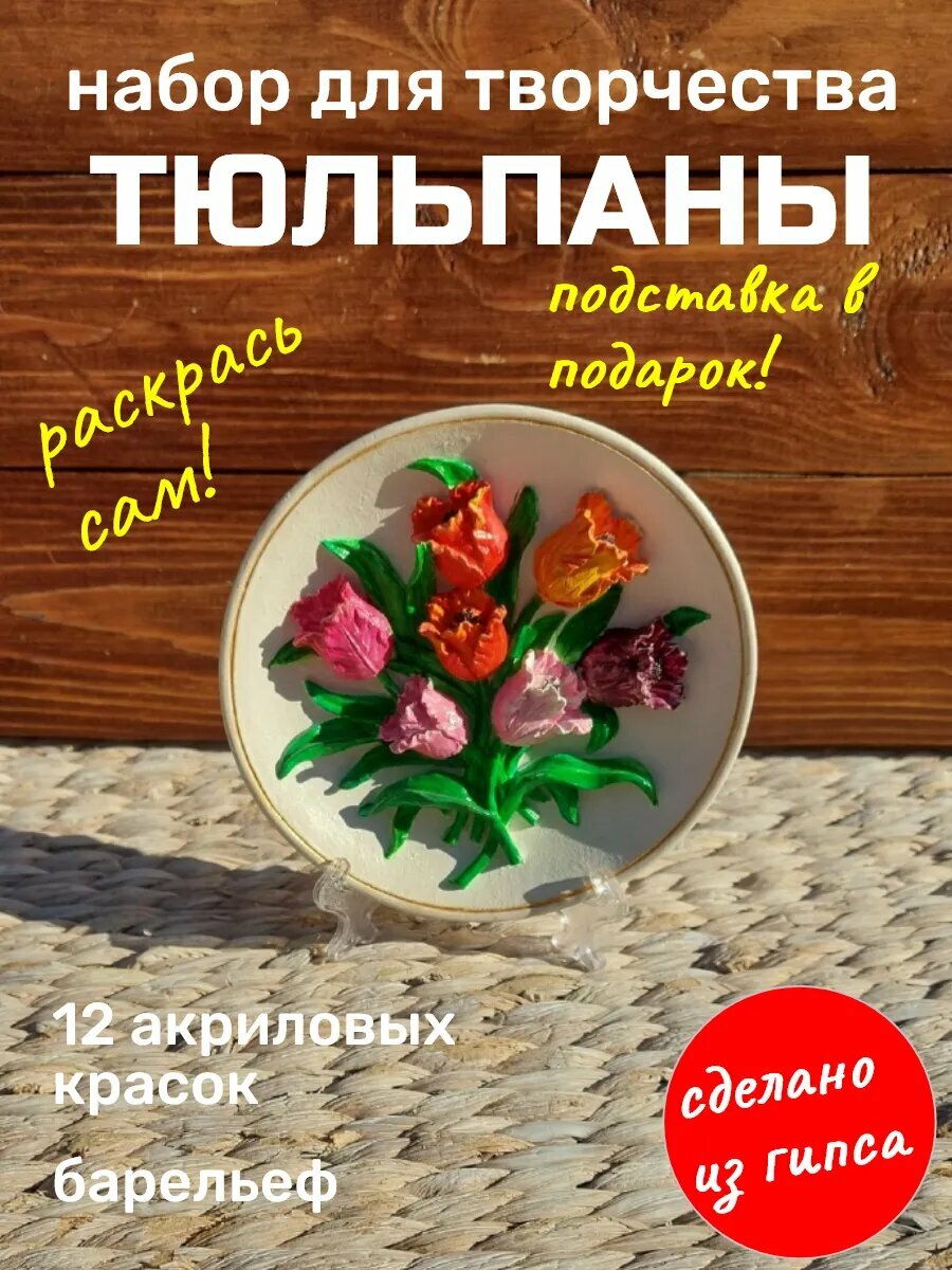 Купить Творческий набор для росписи гипсовый барельеф цветы тюльпаны