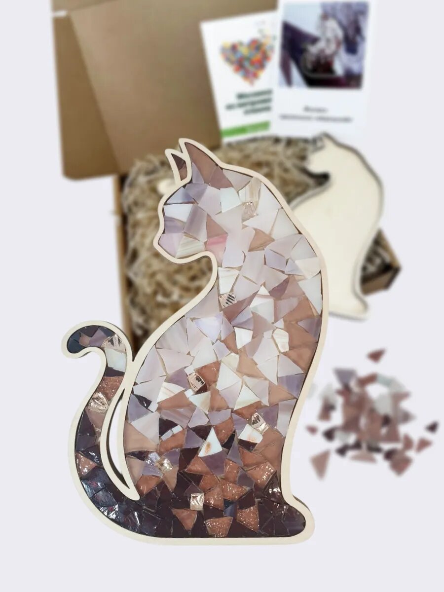 Набор для творчества мозаика стеклянная Котенок рыжий 14 см