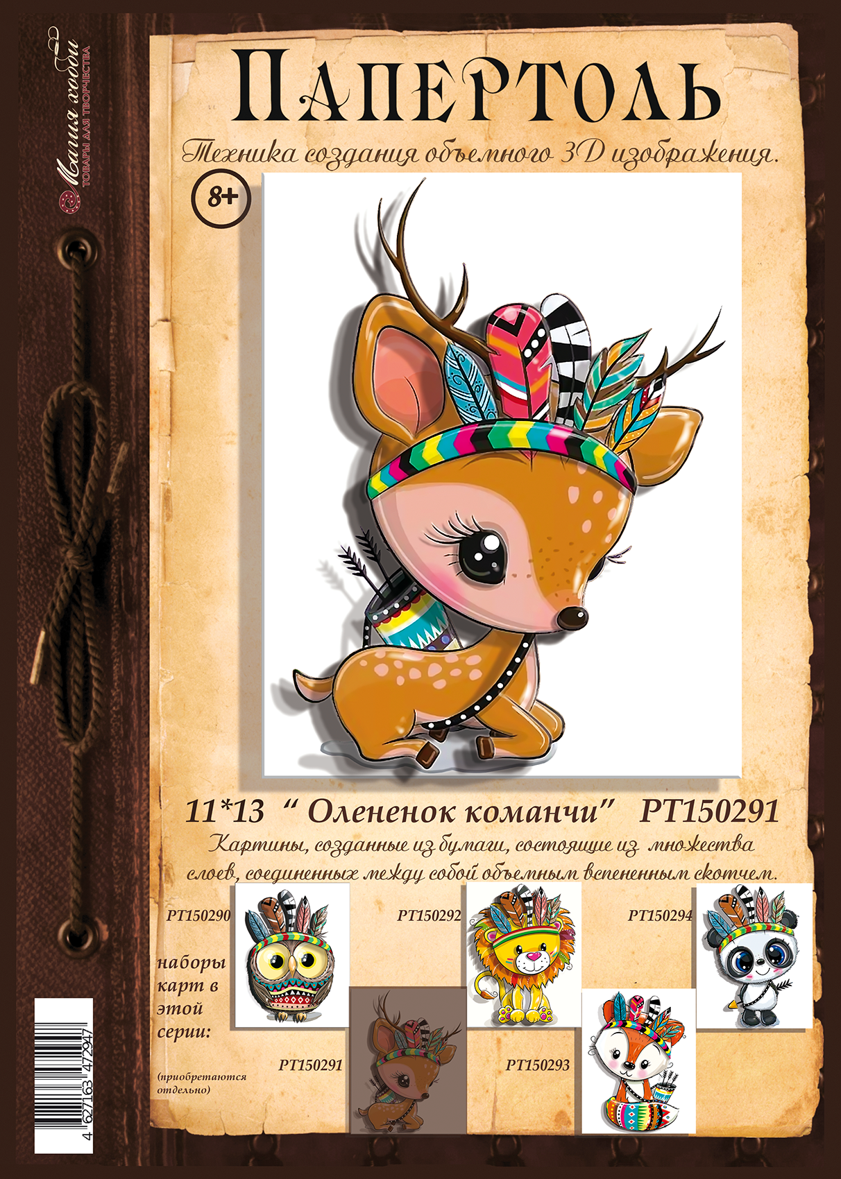 Купить Папертоль "Оленёнок команчи" 11*13см." - РТ150291, Магия Хобби. Карты для изготовления 3D картин, для домашнего декора