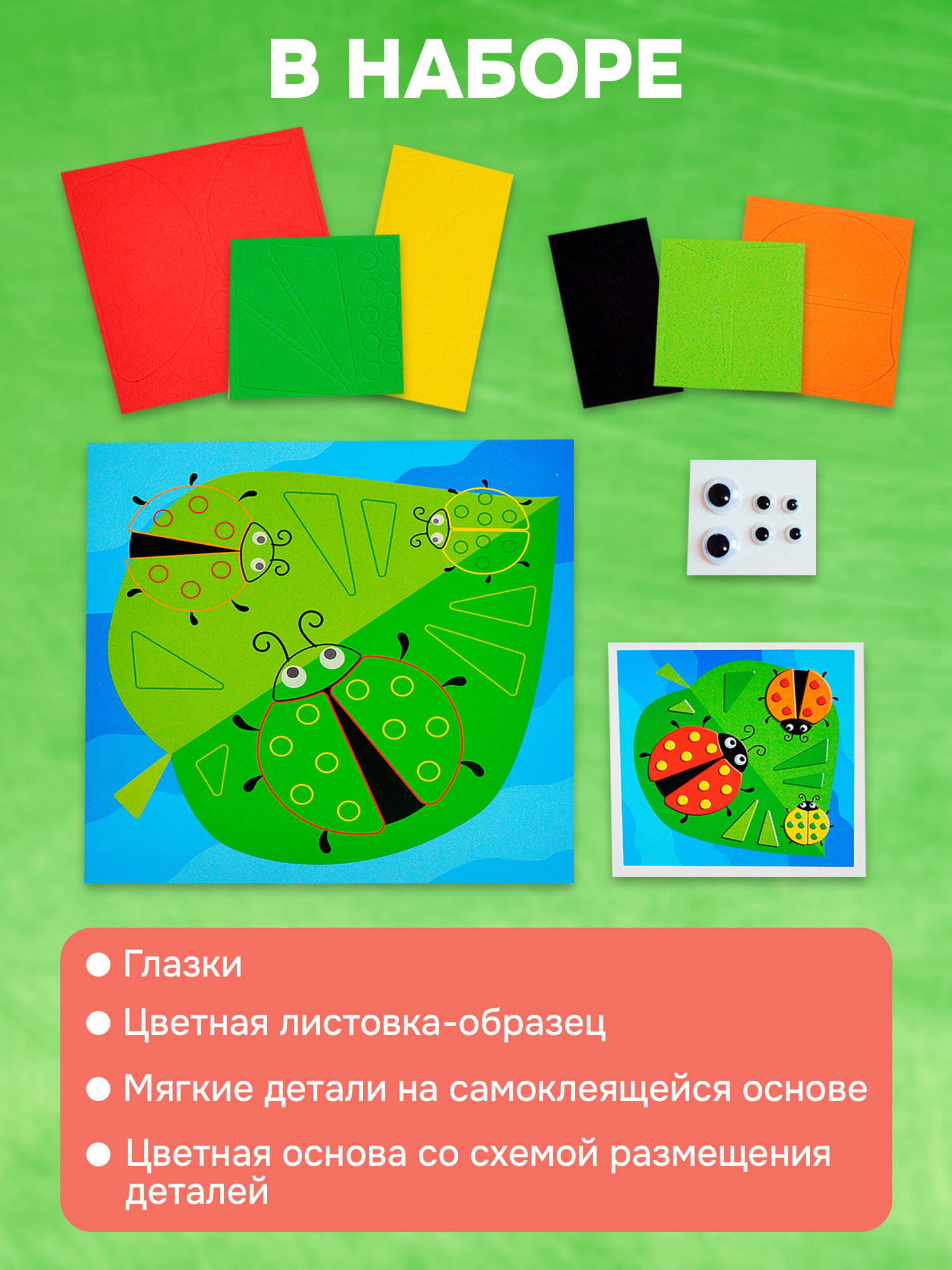 Аппликация для малышей Дрофа-Медиа, мягкая картинка "Божьи коровки" от 3 лет интересное: