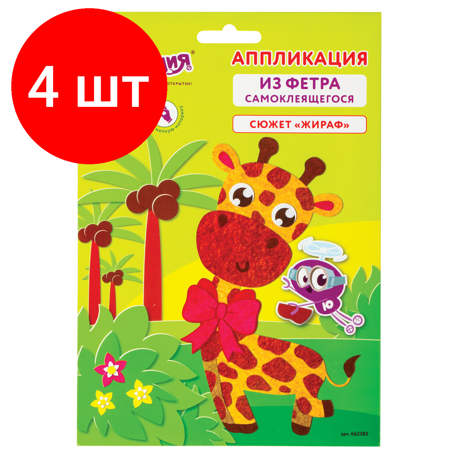 Набор для творчества Аппликация из фетра, Жираф, основа 20х15 см, Юнландия, 662385