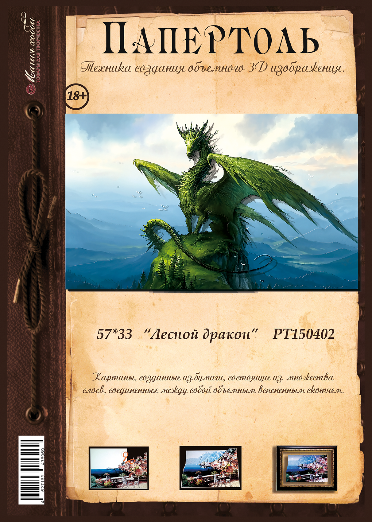 Купить Папертоль "Лесной дракон" - РТ150402, Магия Хобби. Карты для изготовления 3D картин, для домашнего декора
