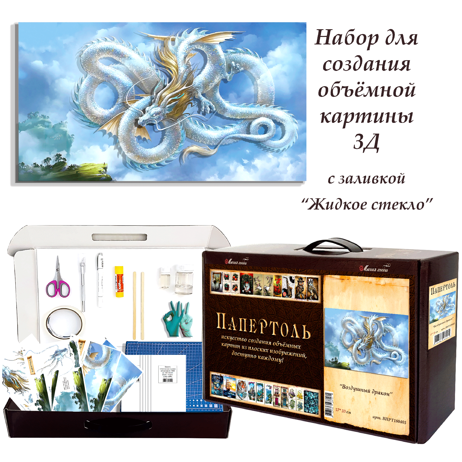Набор папертоль "Воздушный дракон" -ВНРТ180403, Магия Хобби, для творчества, создание 3D картины, для домашнего декора интересное: