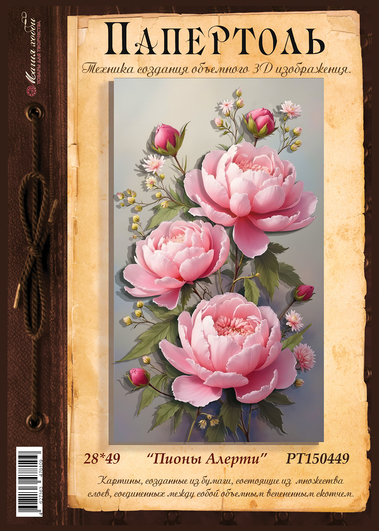Папертоль "Пионы Алерти" 28*49см." - РТ150449, Магия Хобби. Карты для изготовления 3D картин, для домашнего декора интересное: