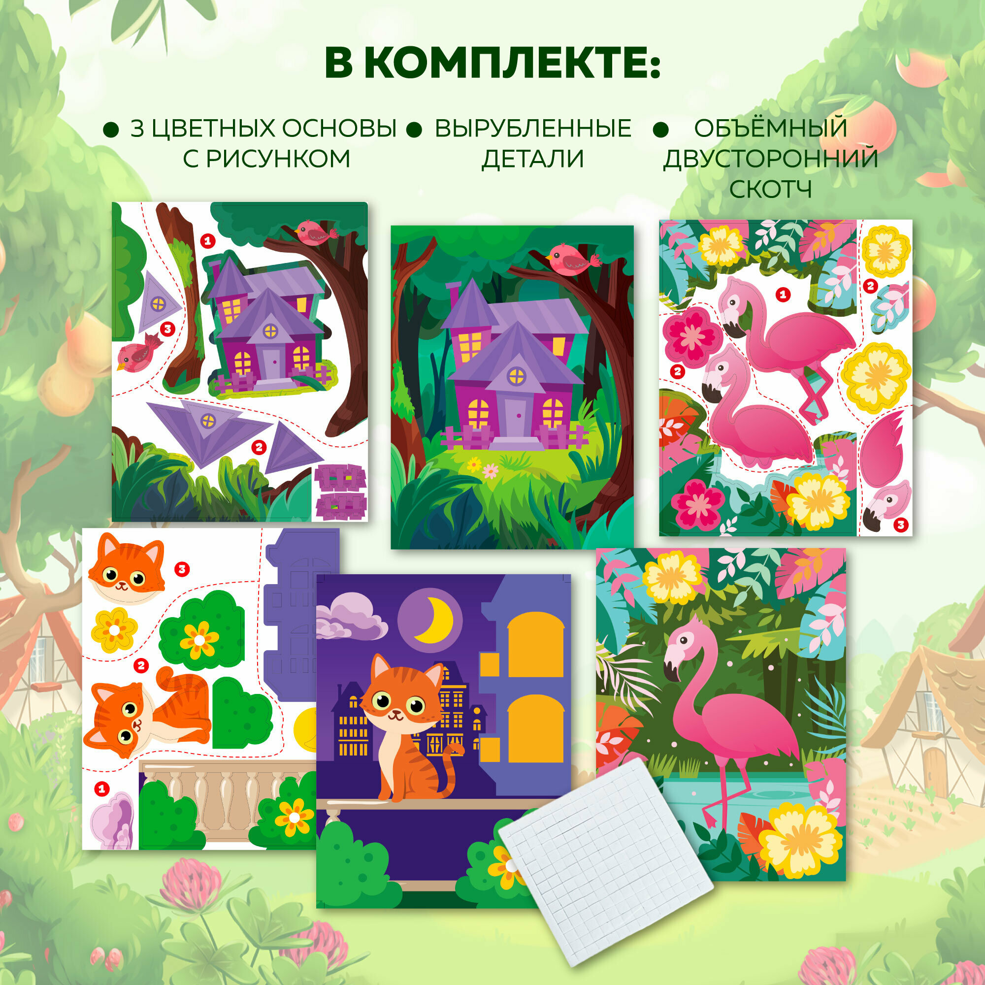 Купить 3Д аппликация. Котёнок. Домик. Фламинго