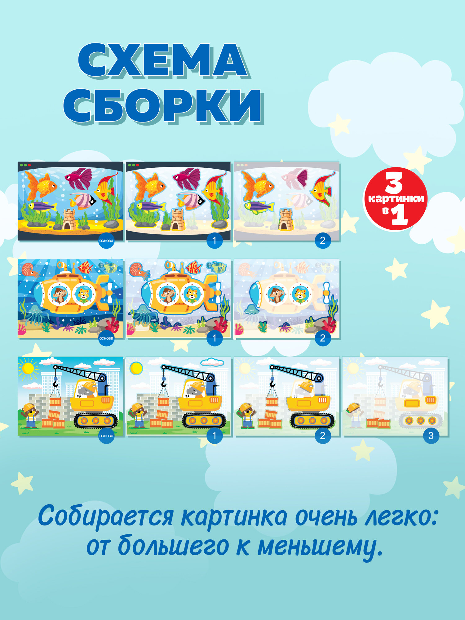 3Д аппликация Дрофа-Медиа. Подводная лодка. Подъёмный кран. Аквариум интересное: