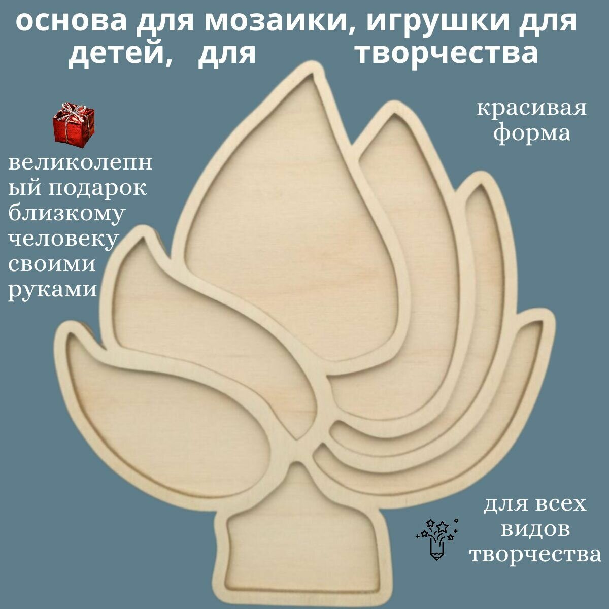 Заготовка для мозаики "ЛОТОС", деревянная, шлифованная, 21x15 см