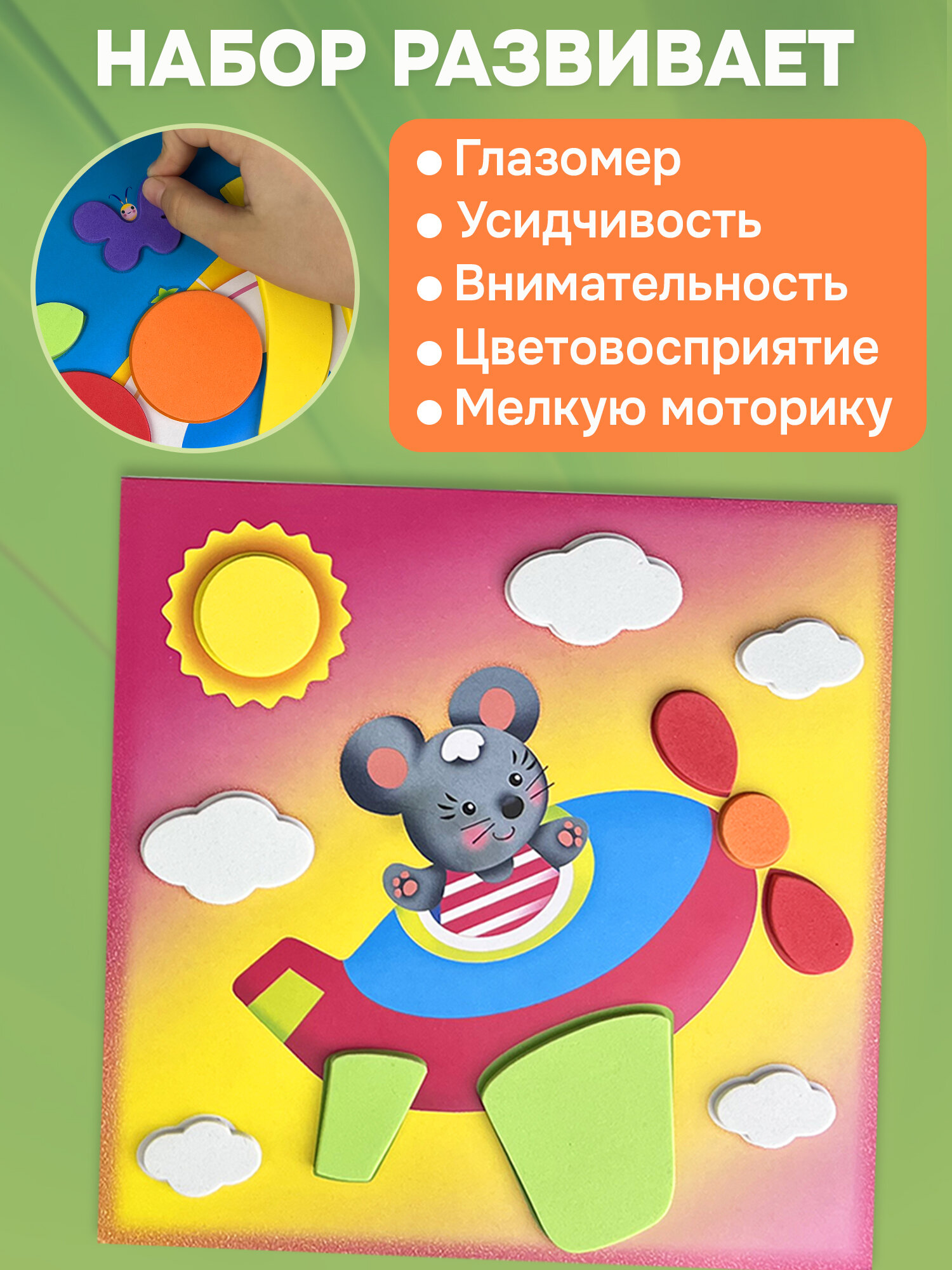Набор для творчества. Мягкие объемные аппликации для малышей. 4 поделки в наборе интересное: