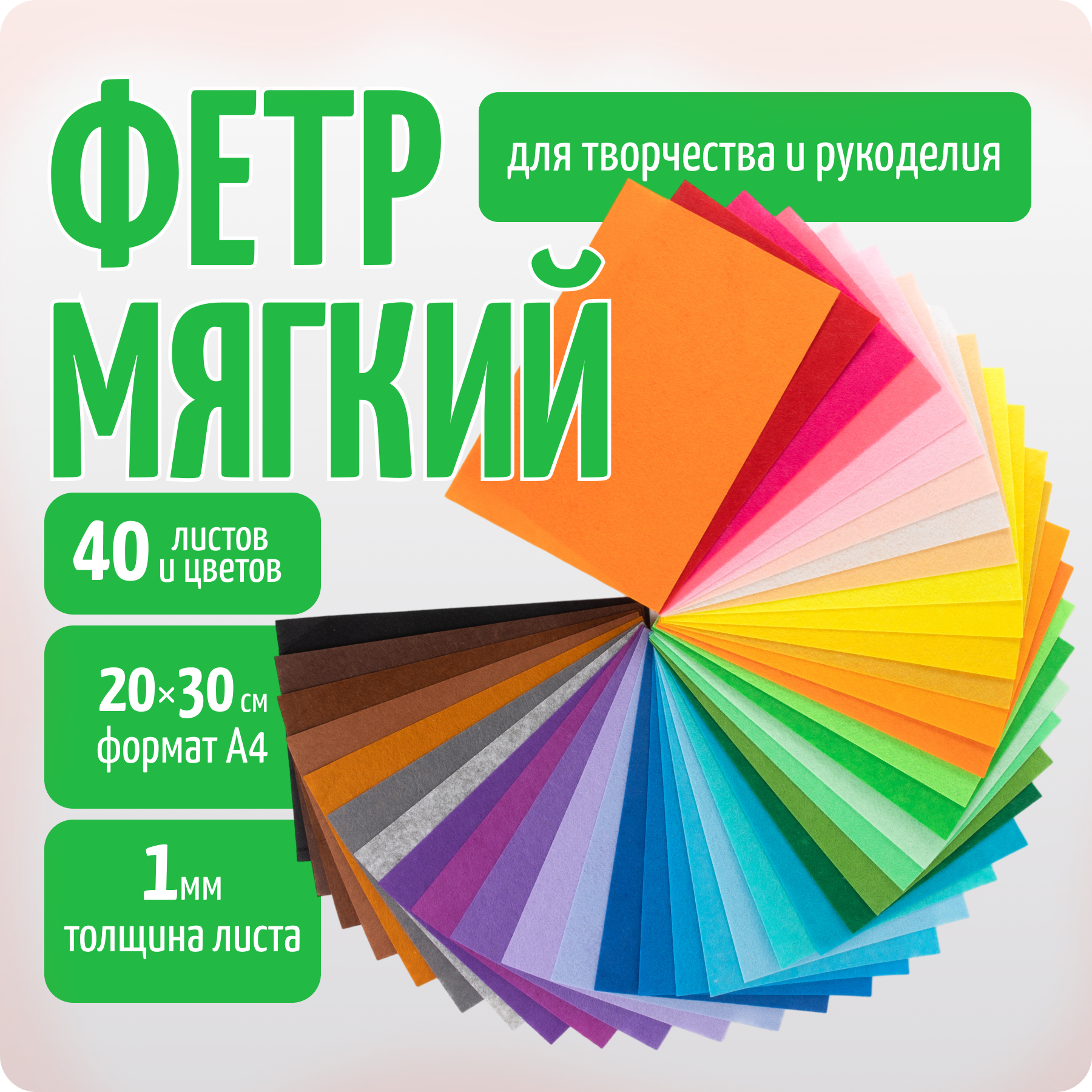 Купить Фетр для рукоделия и творчества, цветной, 1 мм 40 листов, А4, COLOR Si