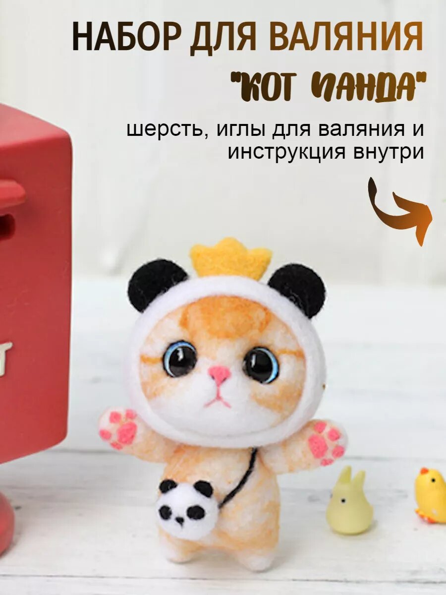Купить Набор для валяния Magia Hobby "Котик-панда", шерсть, иглы, подставка, инструкция