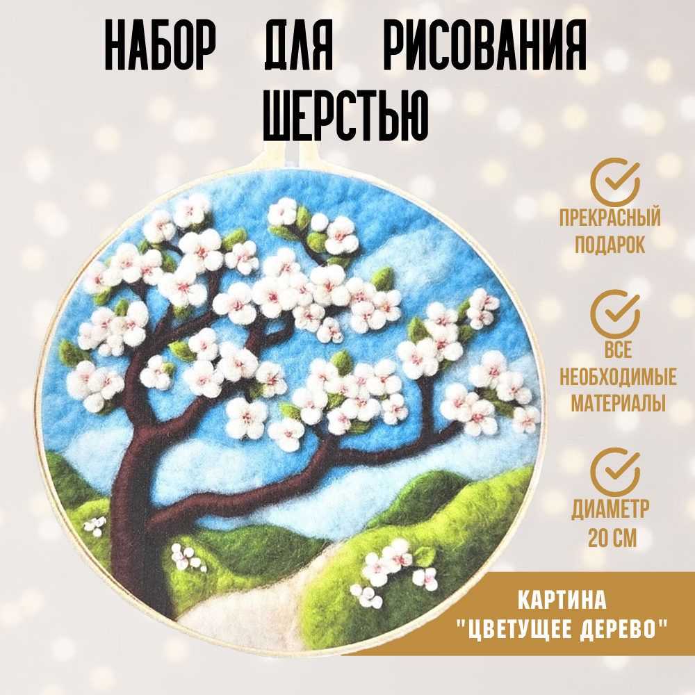 Набор для рисования (валяния) шерстью «Цветущее дерево-2», диаметр 20 см интересное: