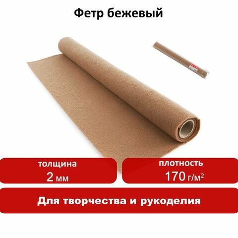 Цветной фетр для творчества в рулоне 500*700мм BRAUBERG, толщ. 2мм, бежевый, 660633 интересное: