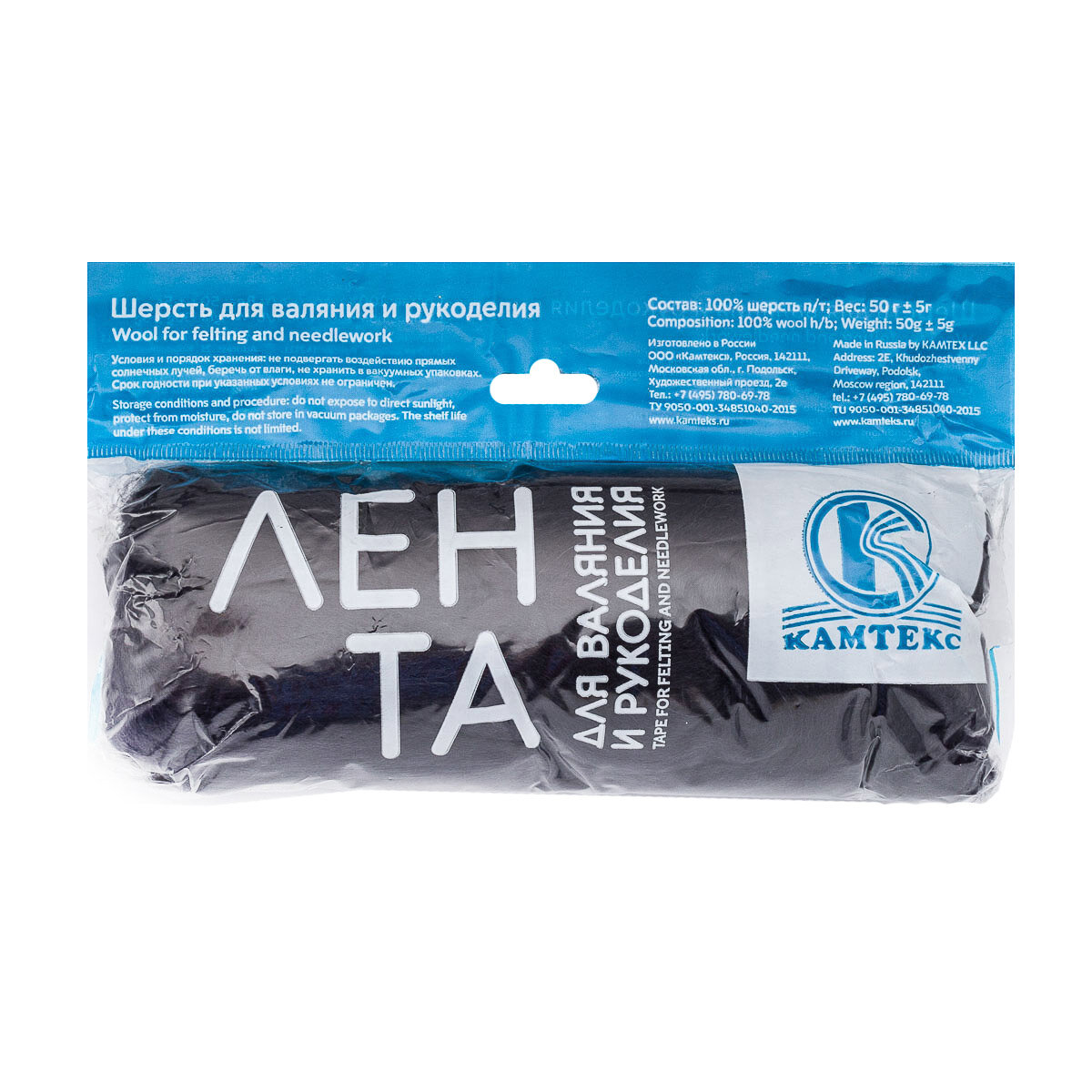 Лента для валяния полутонкая Камтекс, 100% шерсть, 50 г (003 черный)