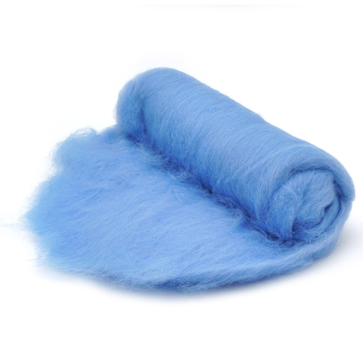 Купить Шерсть для валяния Кардочес, 100% полутонкая шерсть, 100 г, голубая, Камтекс