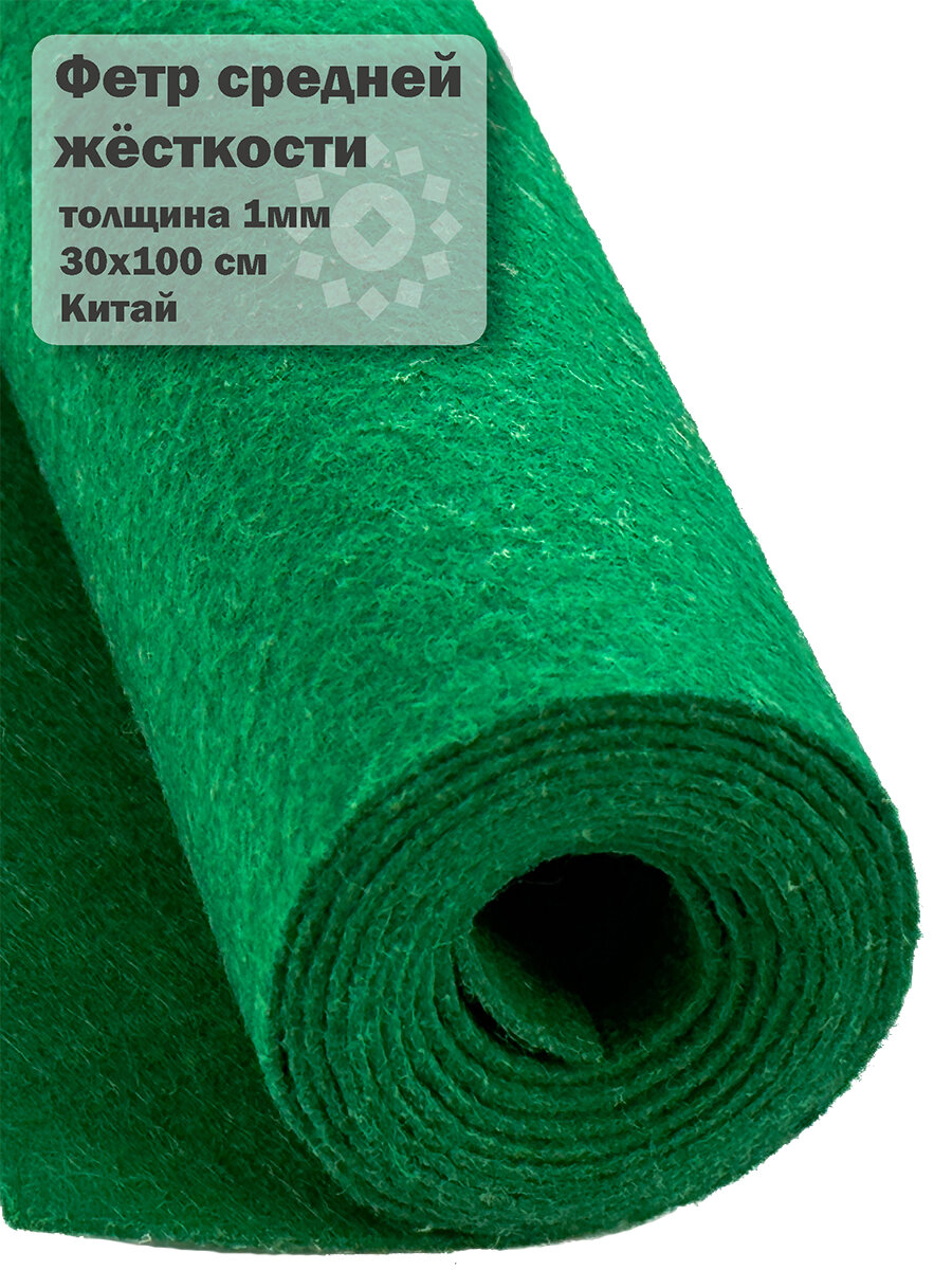 Купить Жесткий фетр Fetrus в рулоне изумрудно-зеленый, 30x100см, толщина 1мм