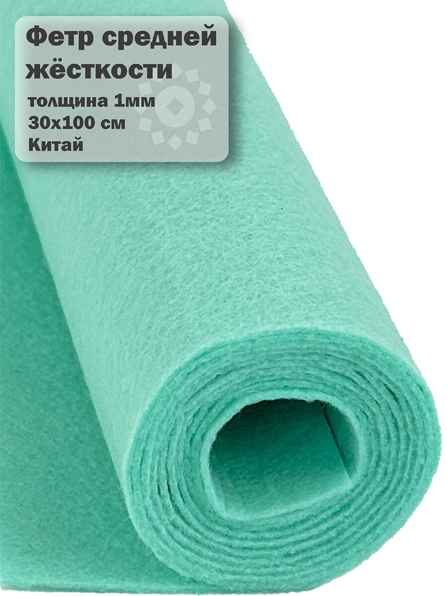 Жесткий фетр Fetrus в рулоне тиффани, размер 30x100см, толщина 1мм