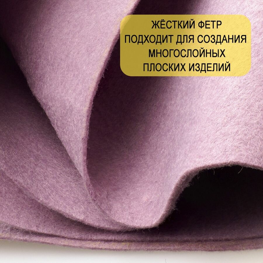 Фетр однотонный твердый 2 мм в рулоне 100 х 100 см, светло-сиреневый С40, плотность 280 г/м2