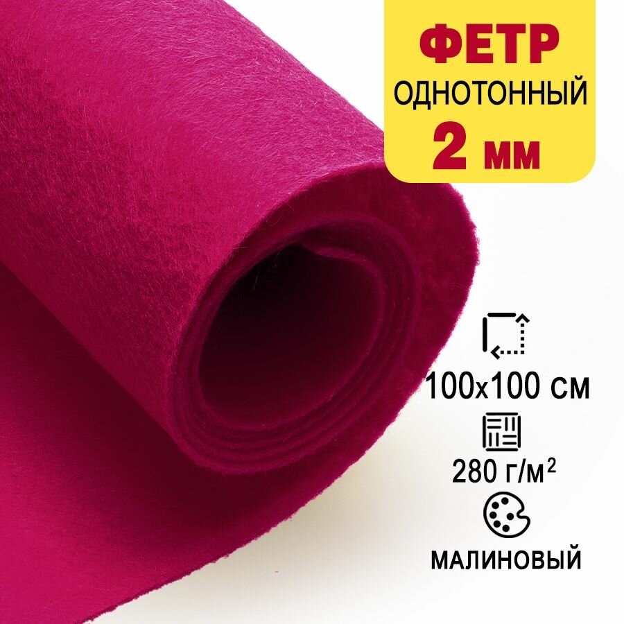 Купить Фетр однотонный твердый 2 мм в рулоне, 100 х 100 см, малиновый С31, плотность 280 г/м2