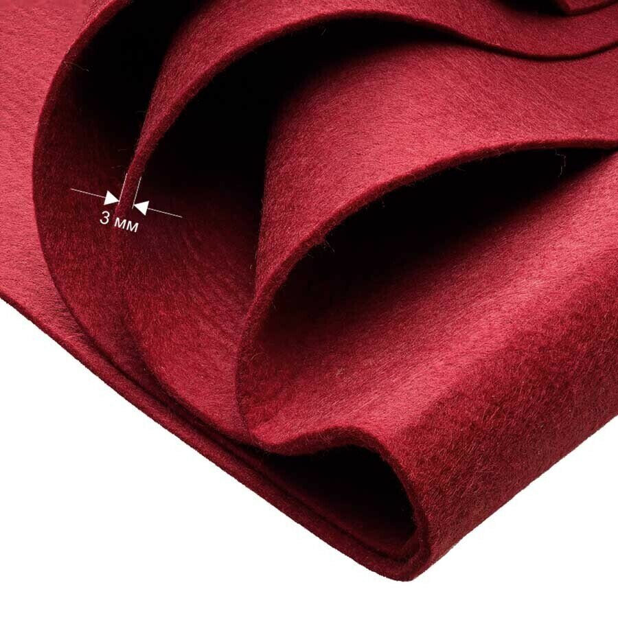Фетр однотонный твердый 3 мм в рулоне 100 х 100 см, бордовый С01, плотность 450 г/м2 интересное: