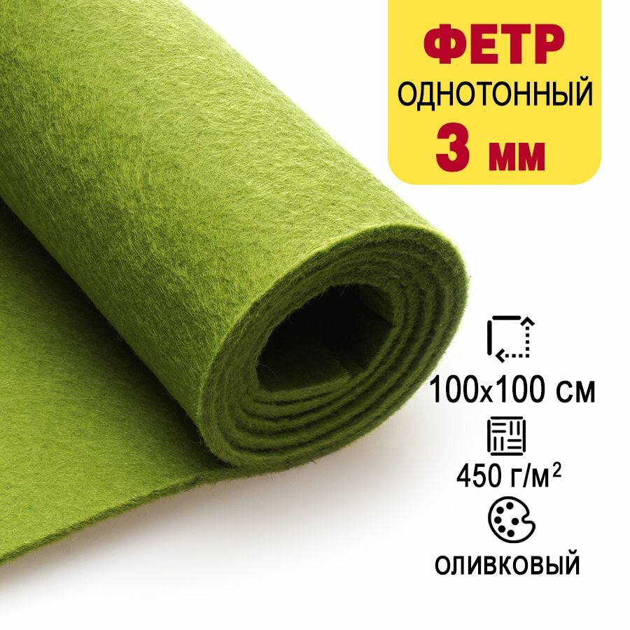 Купить Фетр однотонный твердый 3 мм в рулоне 100 х 100 см, оливковый С10, плотность 450 г/м8