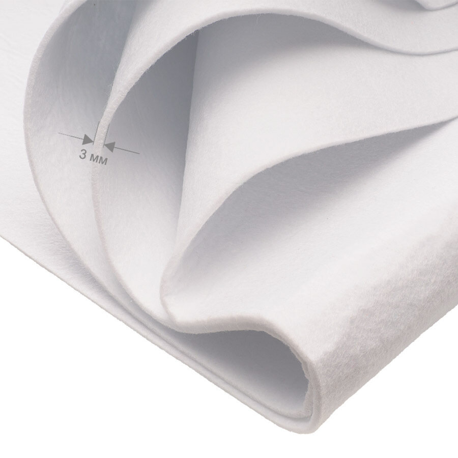 Купить Фетр однотонный твердый 3 мм в рулоне 100 х 100 см, белый С62, плотность 450 г/м2