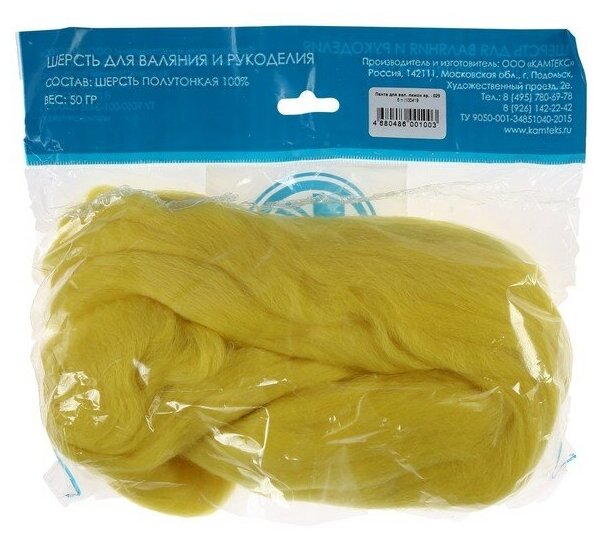 Лента (шерсть) для валяния полутонкая Камтекс, 100% шерсть, 2шт х 50 г (029 яркий лимон) интересное: