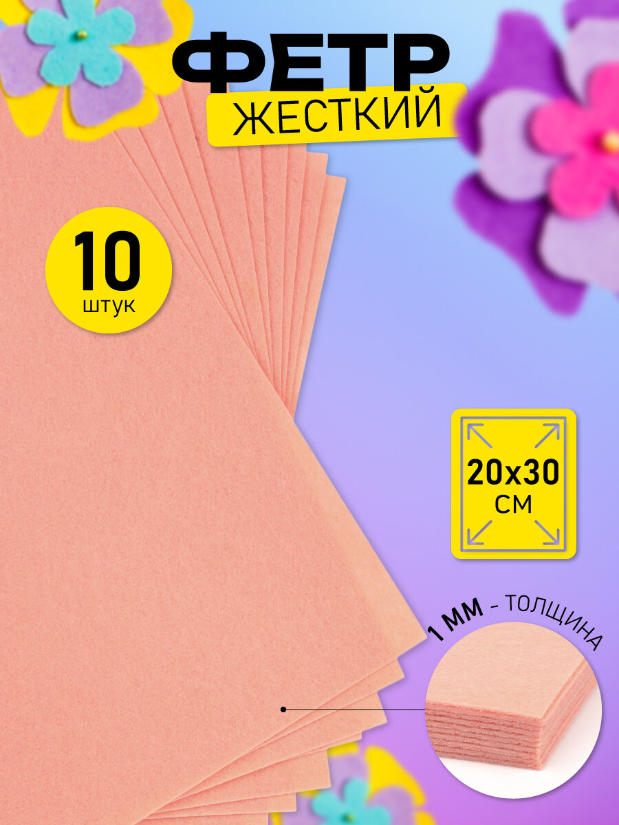 Фетр листовой жесткий IDEAL 1мм 20х30см арт. FLT-H1 уп.10 листов цв.658 бл. розовый интересное: