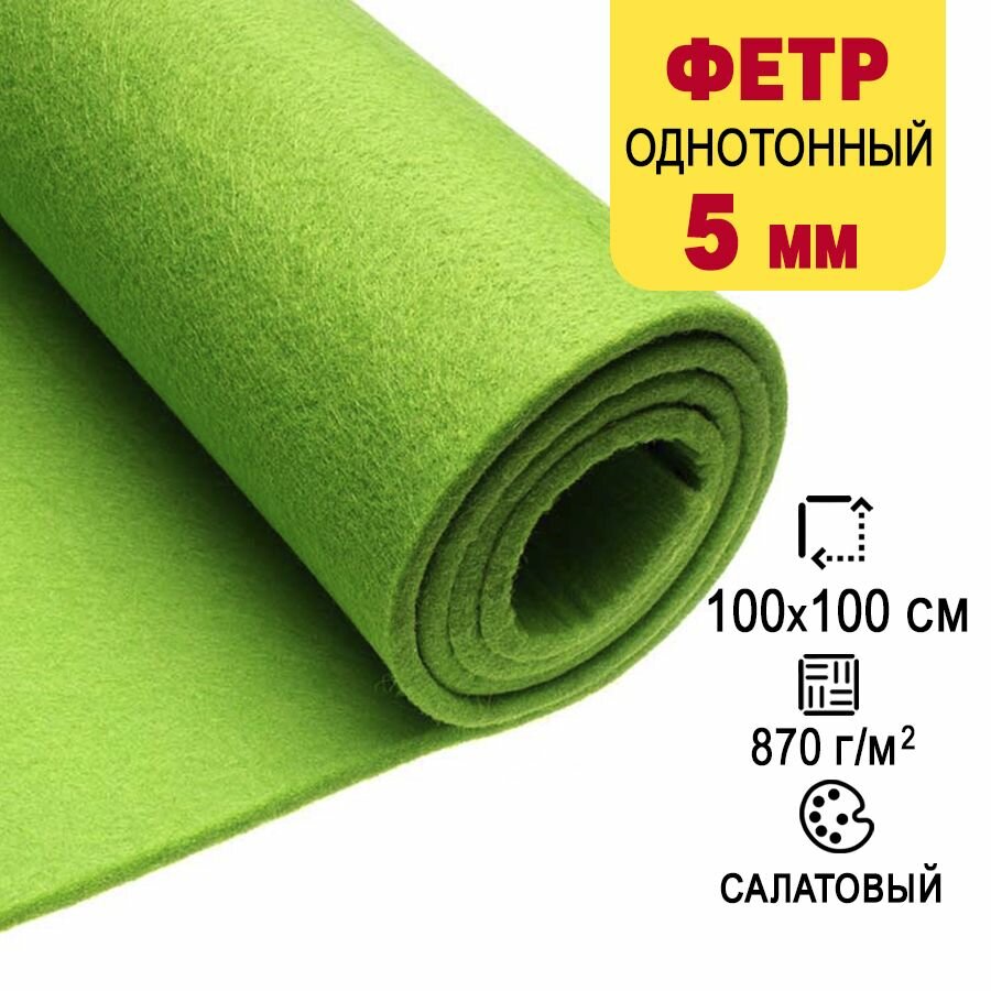 Купить Фетр однотонный твердый 5 мм в рулоне 100 х 100 см, салатовый C11, плотность 870 г/м2