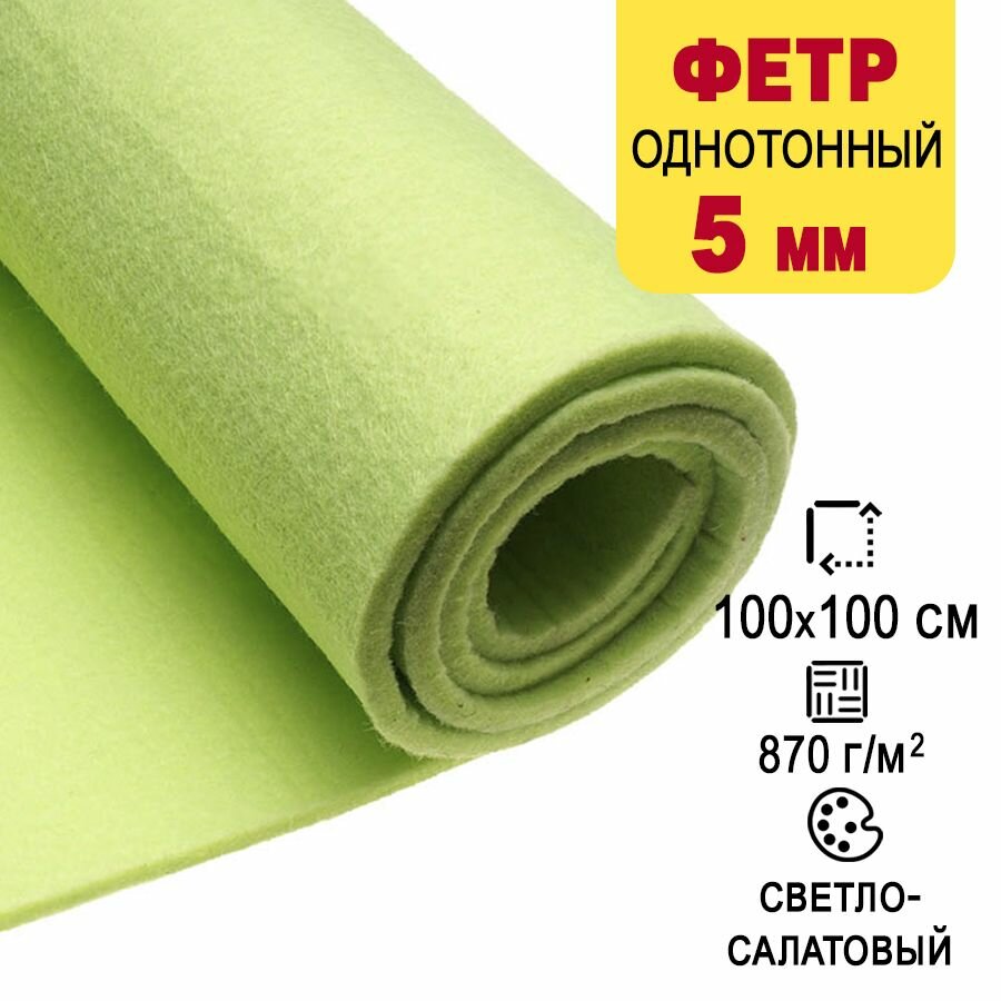 Купить Фетр однотонный твердый 5 мм в рулоне 100 х 100 см, светло-салатовый C59, плотность 870 г/м2